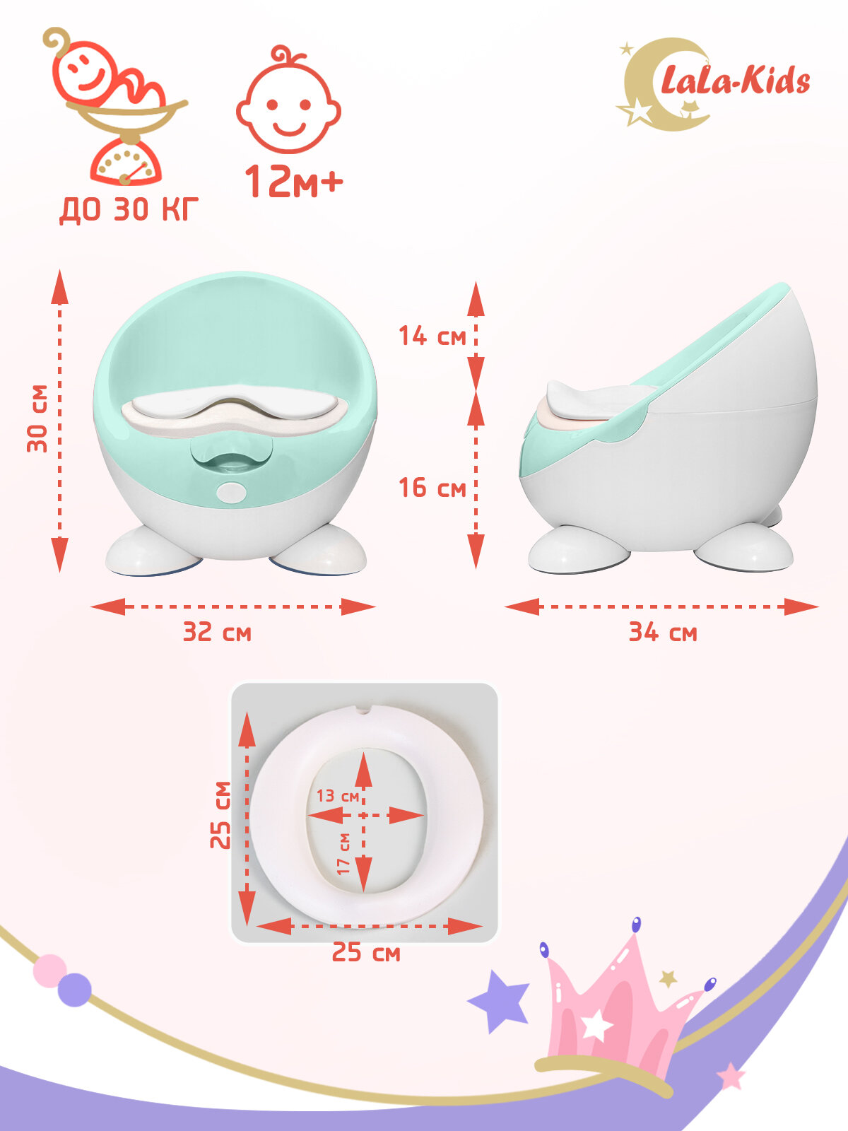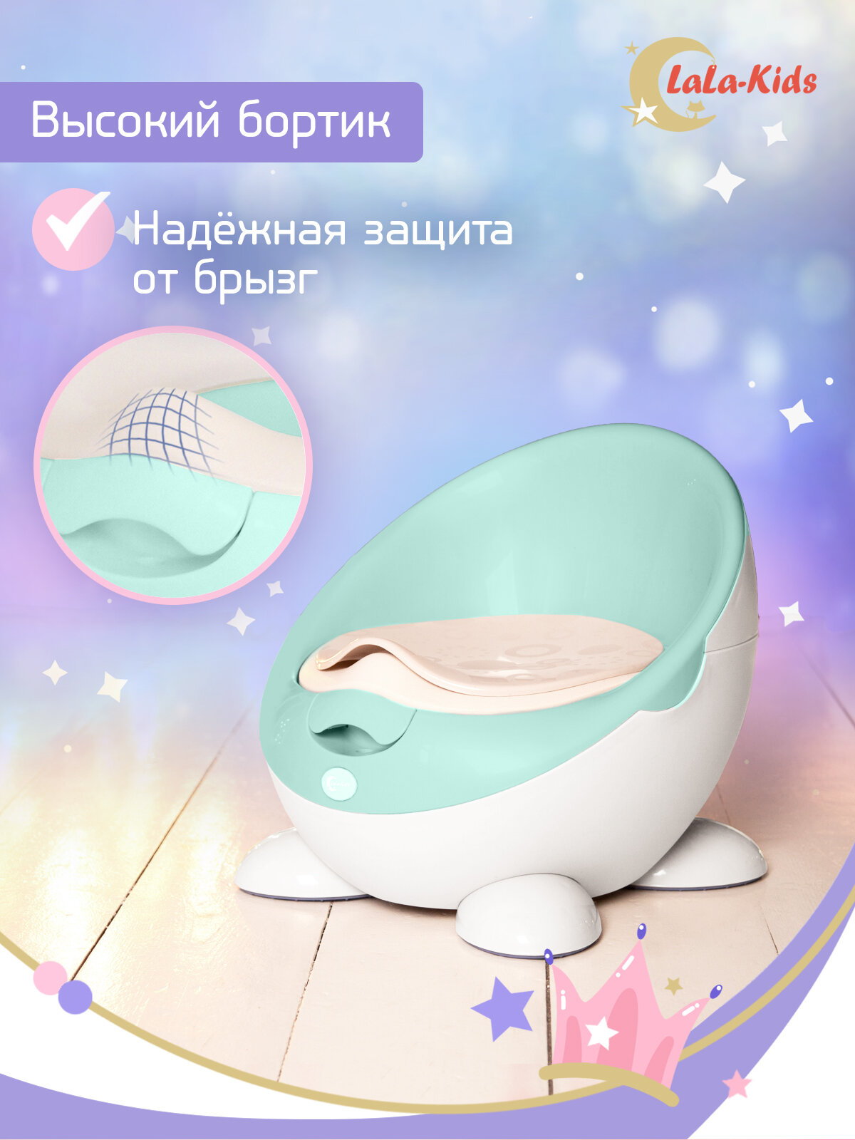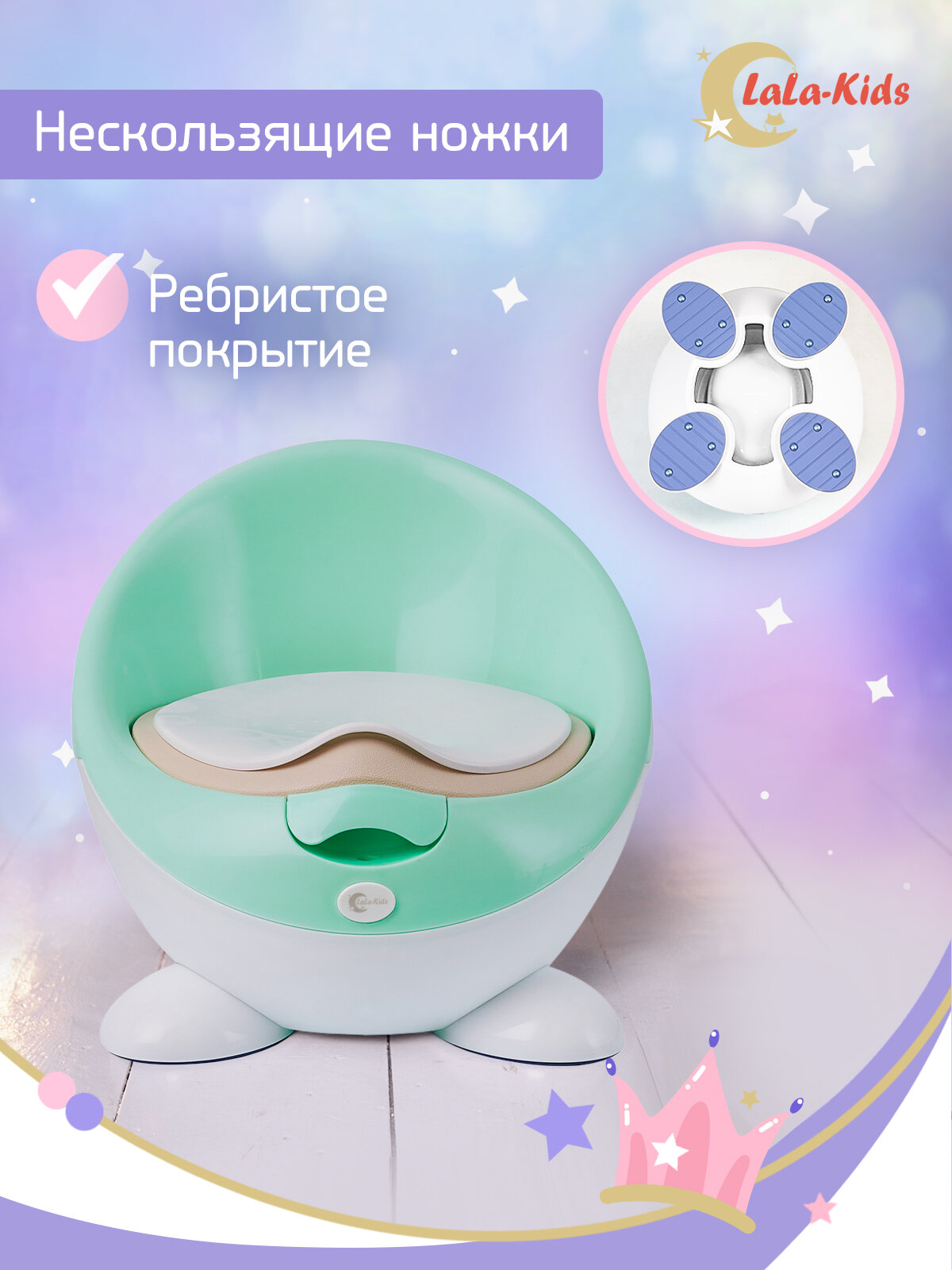 Горшок детский с мягким сиденьем и крышкой "Луноход", LaLa-Kids мятный