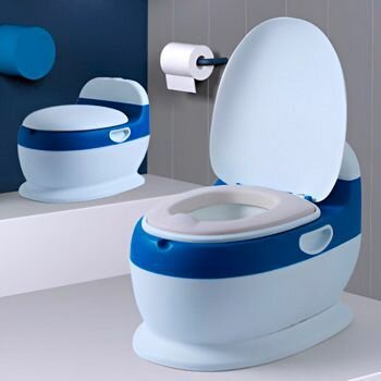 Горшок детский со спинкой унитазик музыкальный (белый/синий) интересное: