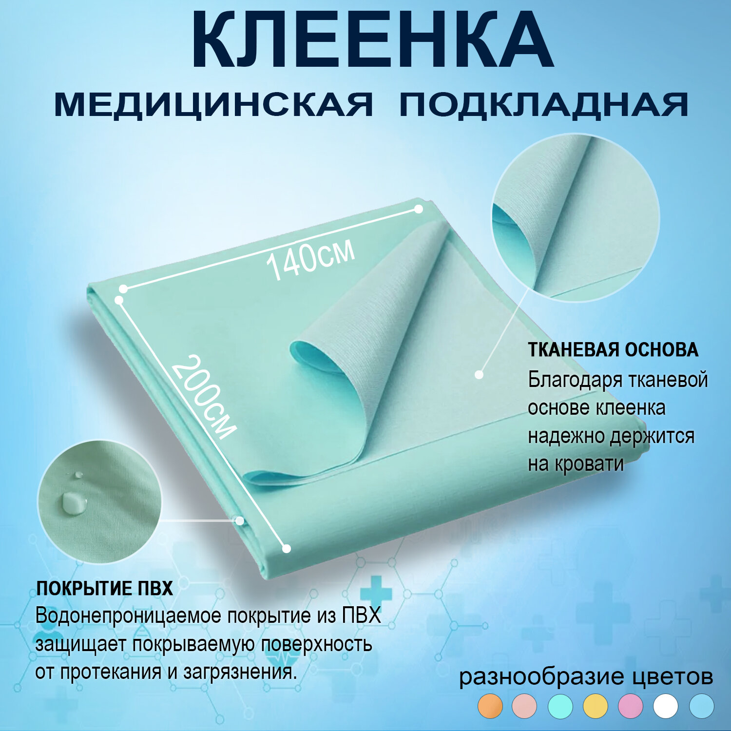 Клеенка медицинская подкладная с ПВХ-покрытием для лежачих больных 200x140см, цвет салатовый/бирюзовый интересное: