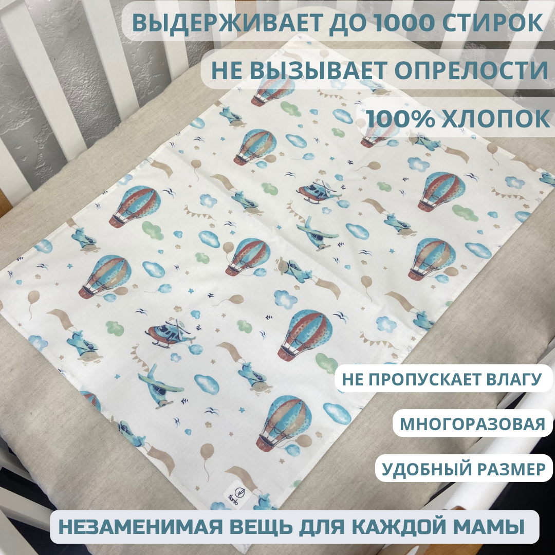 Непромокаемая пеленка для детей 50*70. Сатин. Многоразовая