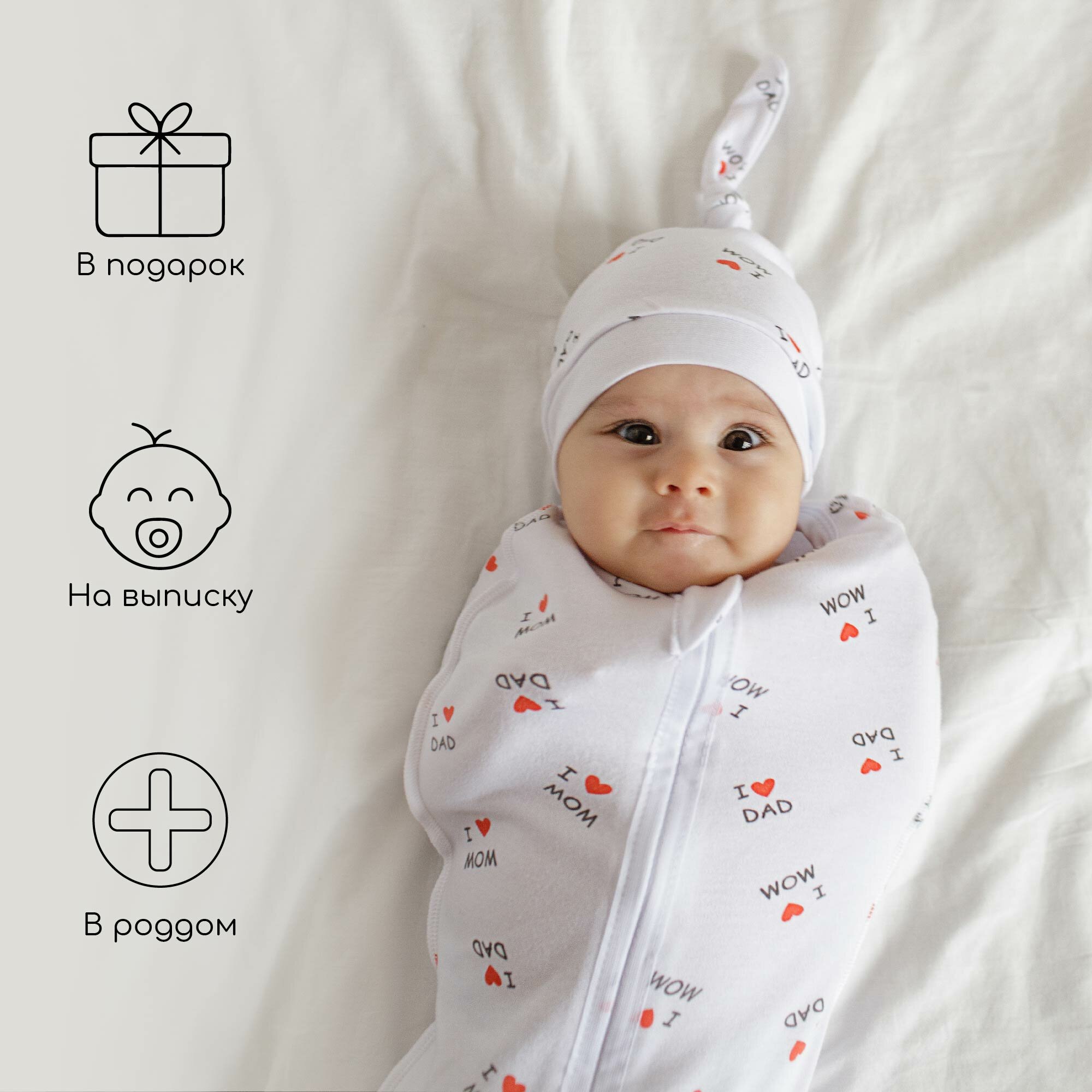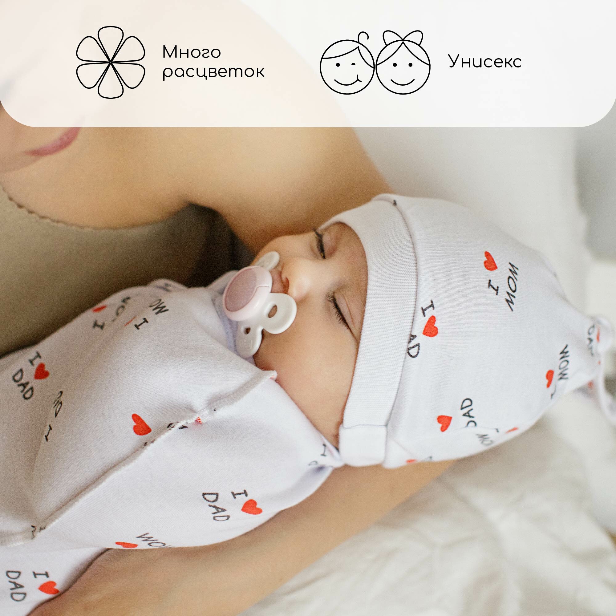Пеленка (кокон на молнии) с шапочкой Amarobaby (Soft Hugs) 56/68 Любовь