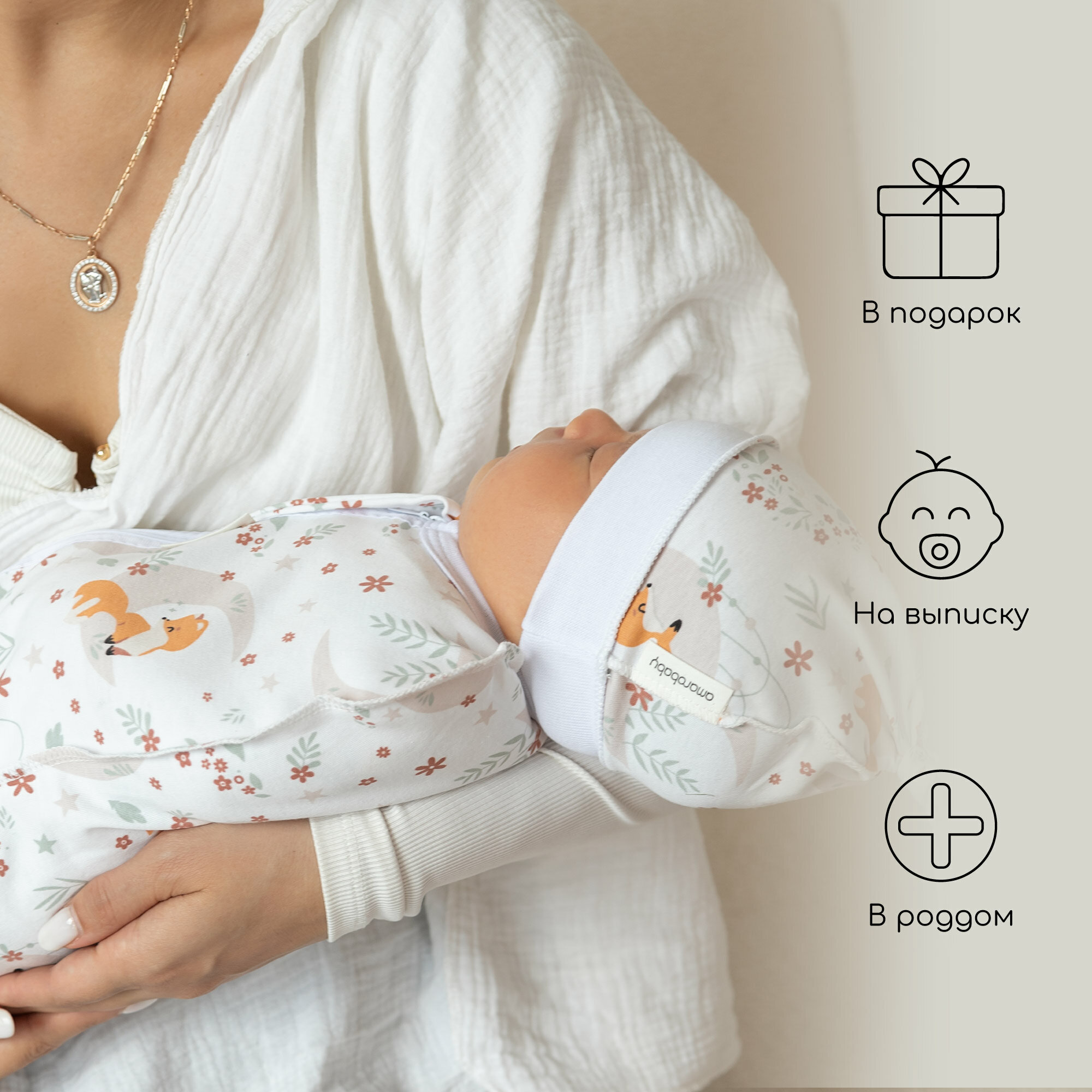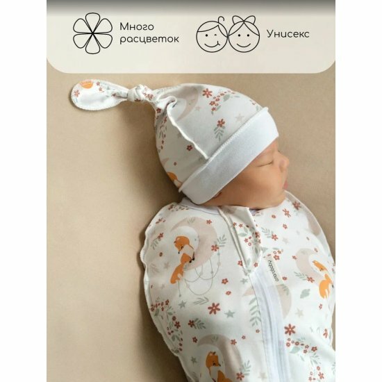 СохранитьПеленка (кокон на молнии) с шапочкой Amarobaby (Soft Hugs) 56/68 Лиса интересное: