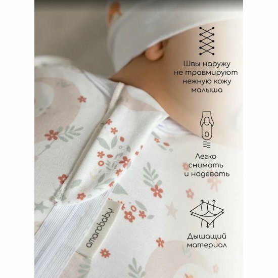 Пеленка (кокон на молнии) с шапочкой Amarobaby (Soft Hugs) 68/74 Цветы