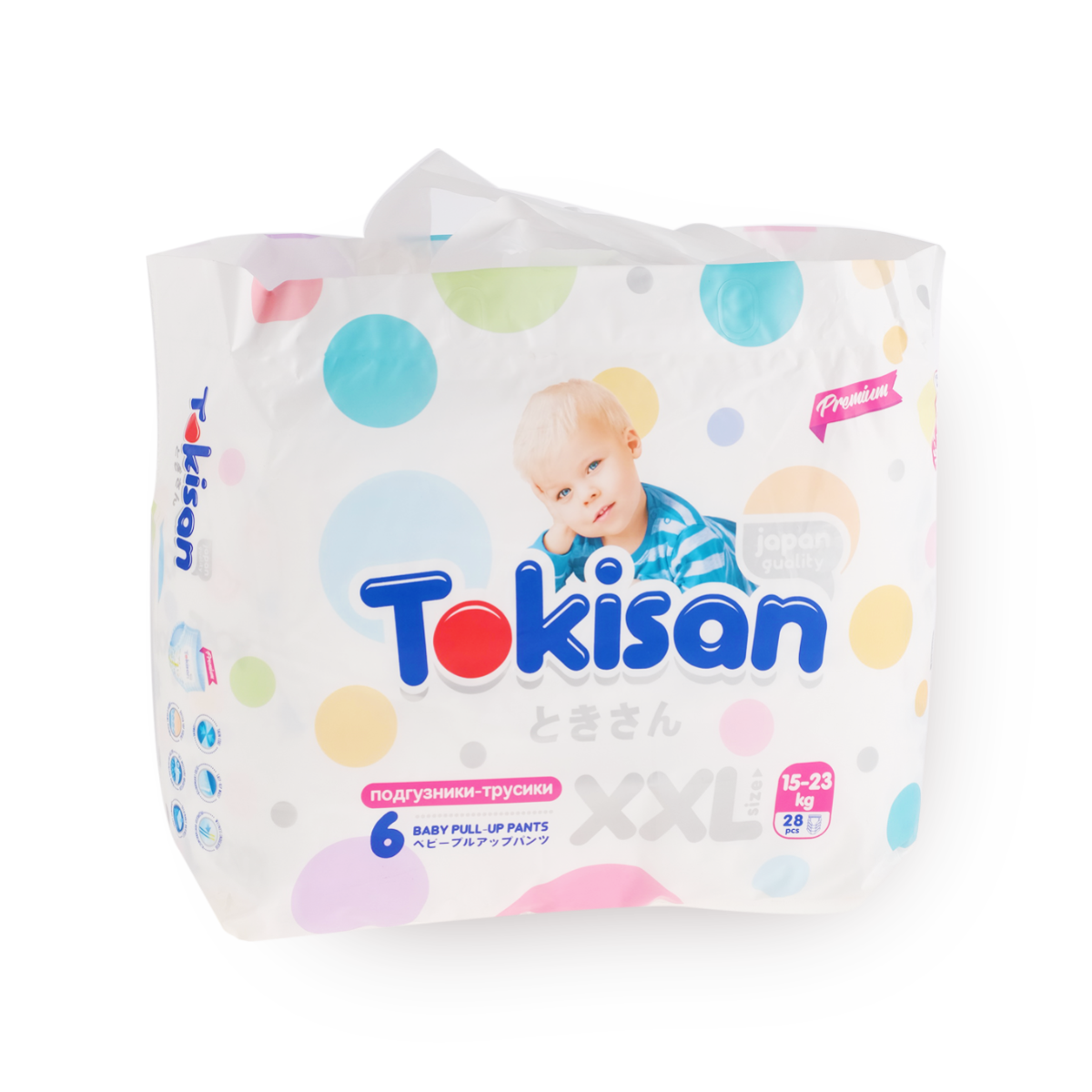 Подгузники трусики детские Tokisan размер 6 / XXL, 28 шт для мальчиков и девочек, эко памперсы дневные / ночные одноразовые, гипоаллергенные, ультратонкие, японская технология