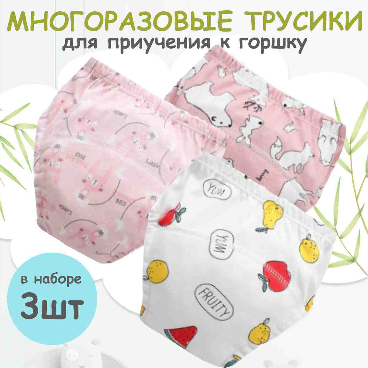 Купить Трусики для приучения к горшку набор 3 шт. "Розово-белый". Размер M-90 (9-13 кг)