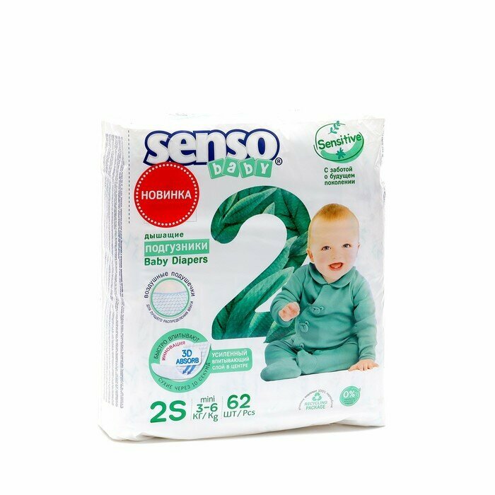 Купить Подгузники детские Senso Baby Sensitive 2S MINI (3-6 кг), 62 шт.