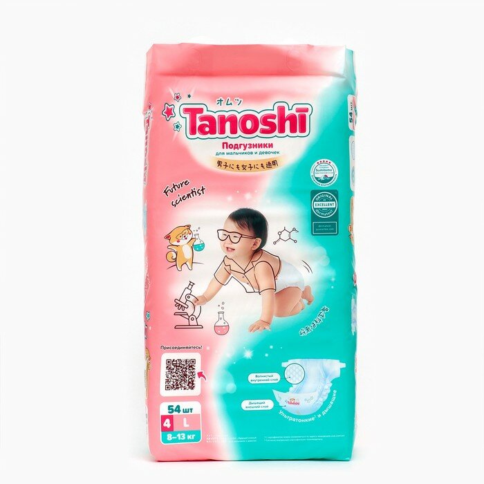 Tanoshi Подгузники для детей, размер L 8-13 кг, 54 шт.
