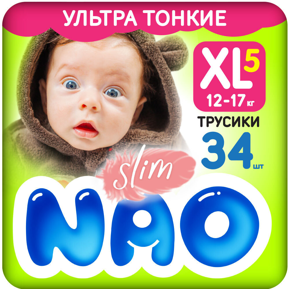 Купить Подгузники трусики 5 размер XL для детей от 12-17 кг детские для мальчиков девочек японские ночные памперсы премиум 34 шт / Нао Слим ультратонкие