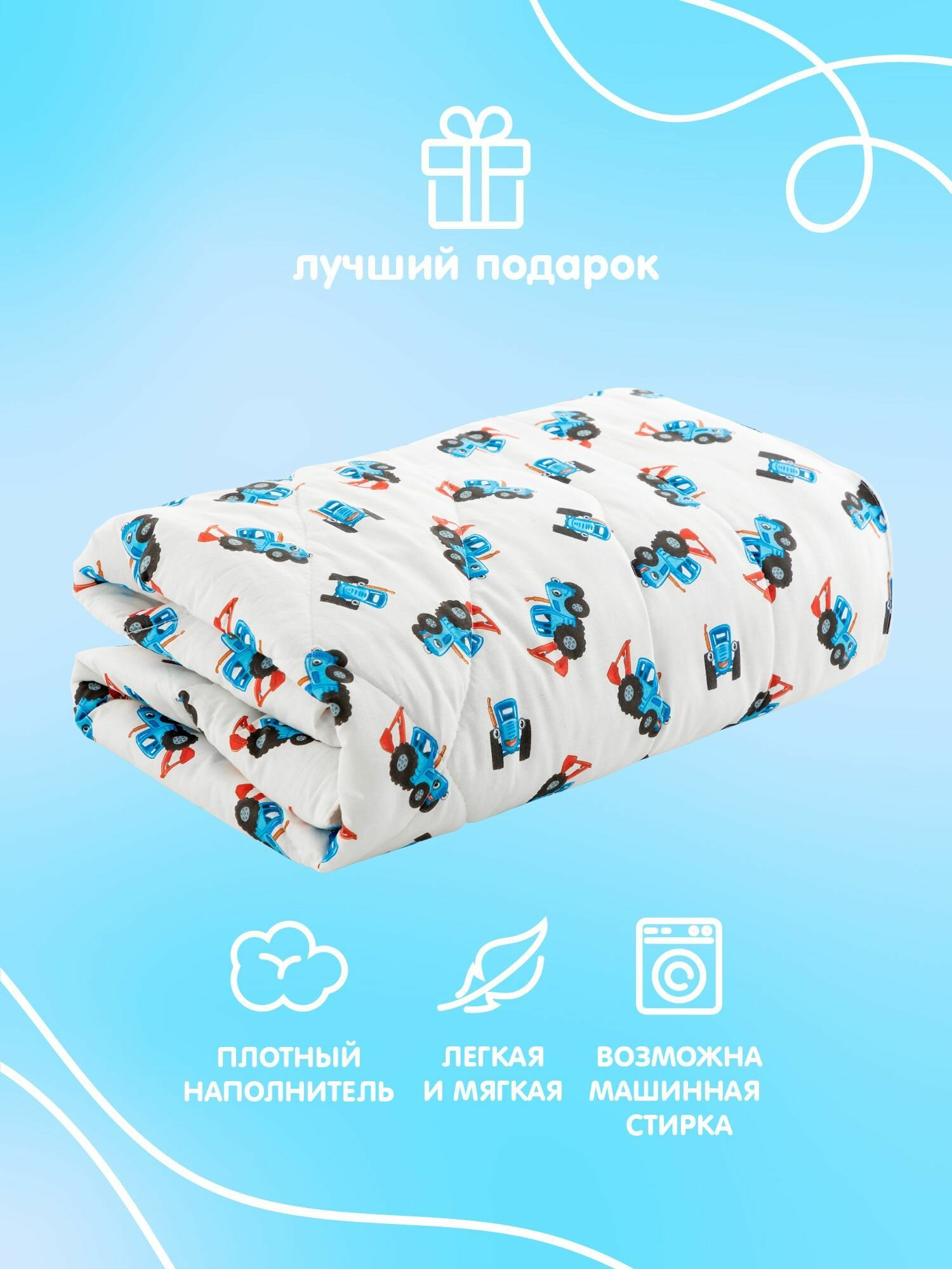 Одеяло стеганое детское 14 0х 110 Синий трактор Непоседа 140х110 интересное:
