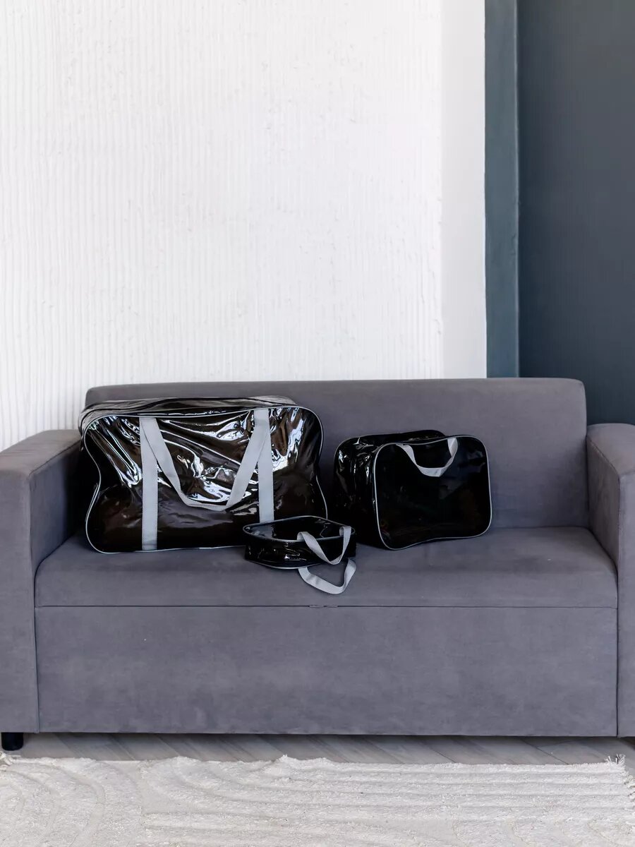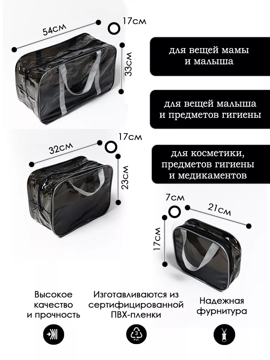 Прозрачные сумки в роддом 3шт, бренд "Золотой октябрь", цвет черно-серый