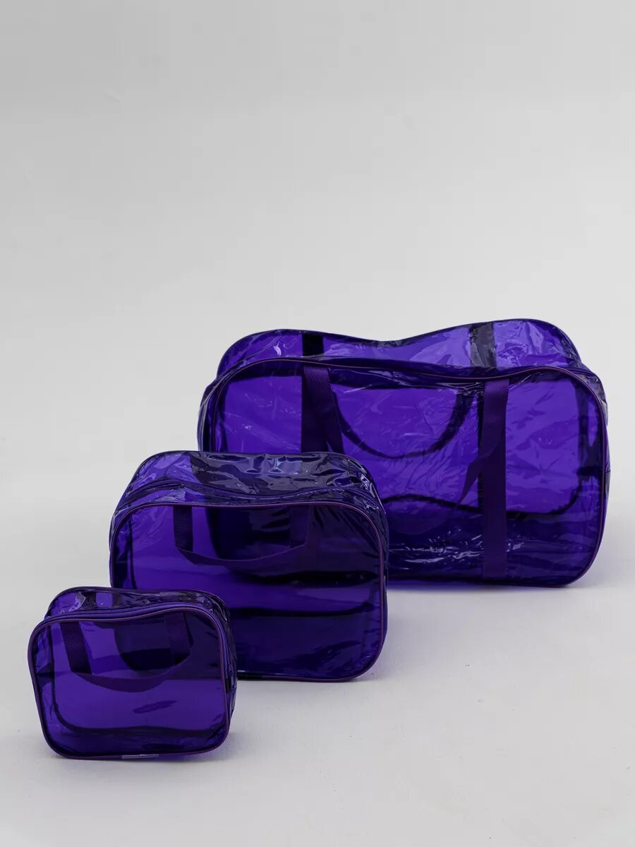 Купить Прозрачные сумки в роддом 3 шт., особо прочные, бренд "Золотой октябрь", цвет фиолетовый-лиловый