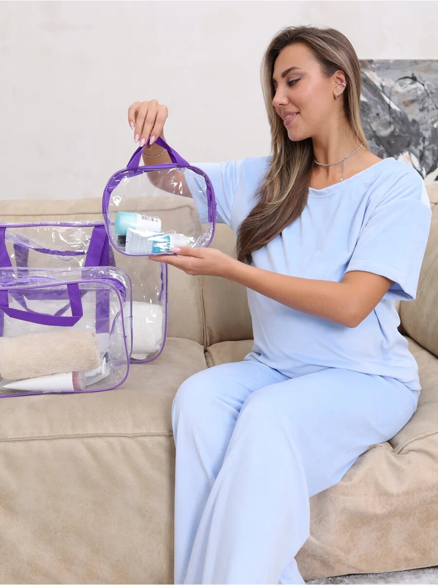 Купить Сумки в роддом прозрачные 3 шт., бренд "Золотой октябрь", цвет фиолетовый