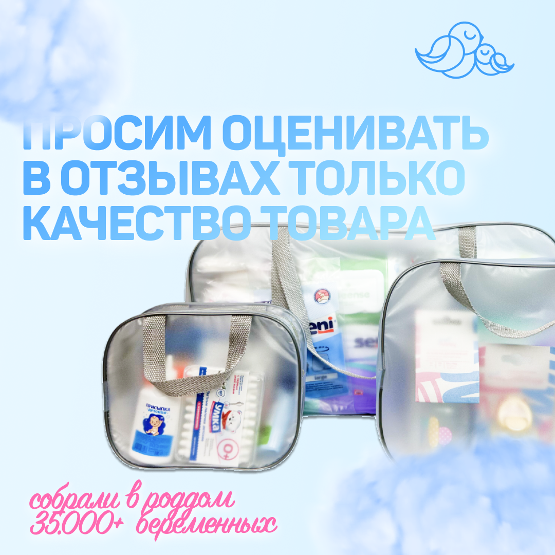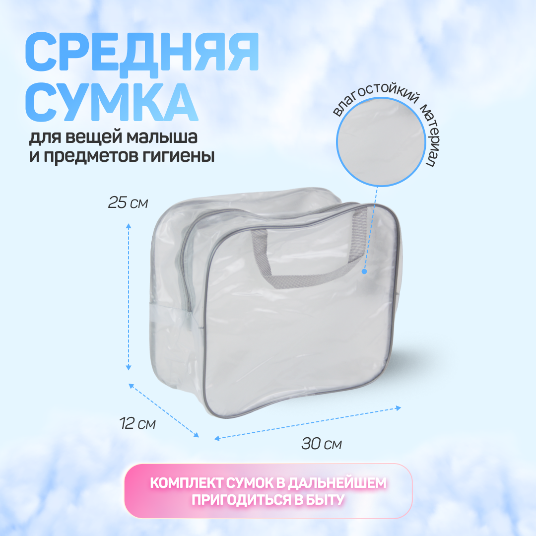 Сумка в роддом для мамы и малыша готовая с наполнением, 30 предметов + 3 сумки, комплектация "Стандарт+", прозрачная