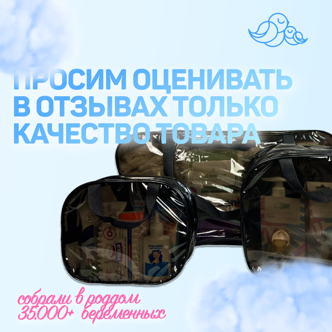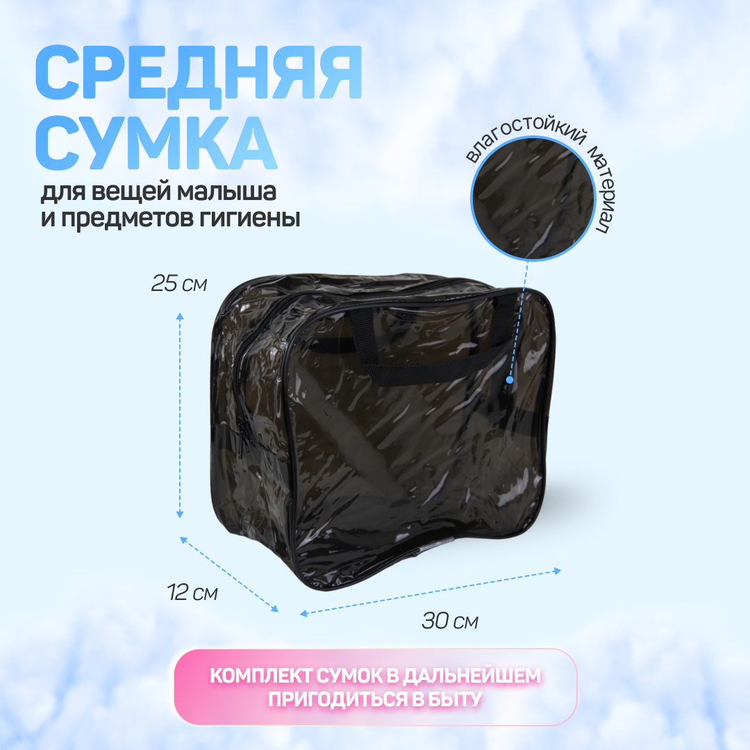 Сумка в роддом для мамы и малыша готовая с наполнением, 30 предметов + 3 сумки, комплектация "Стандарт+", прозрачная