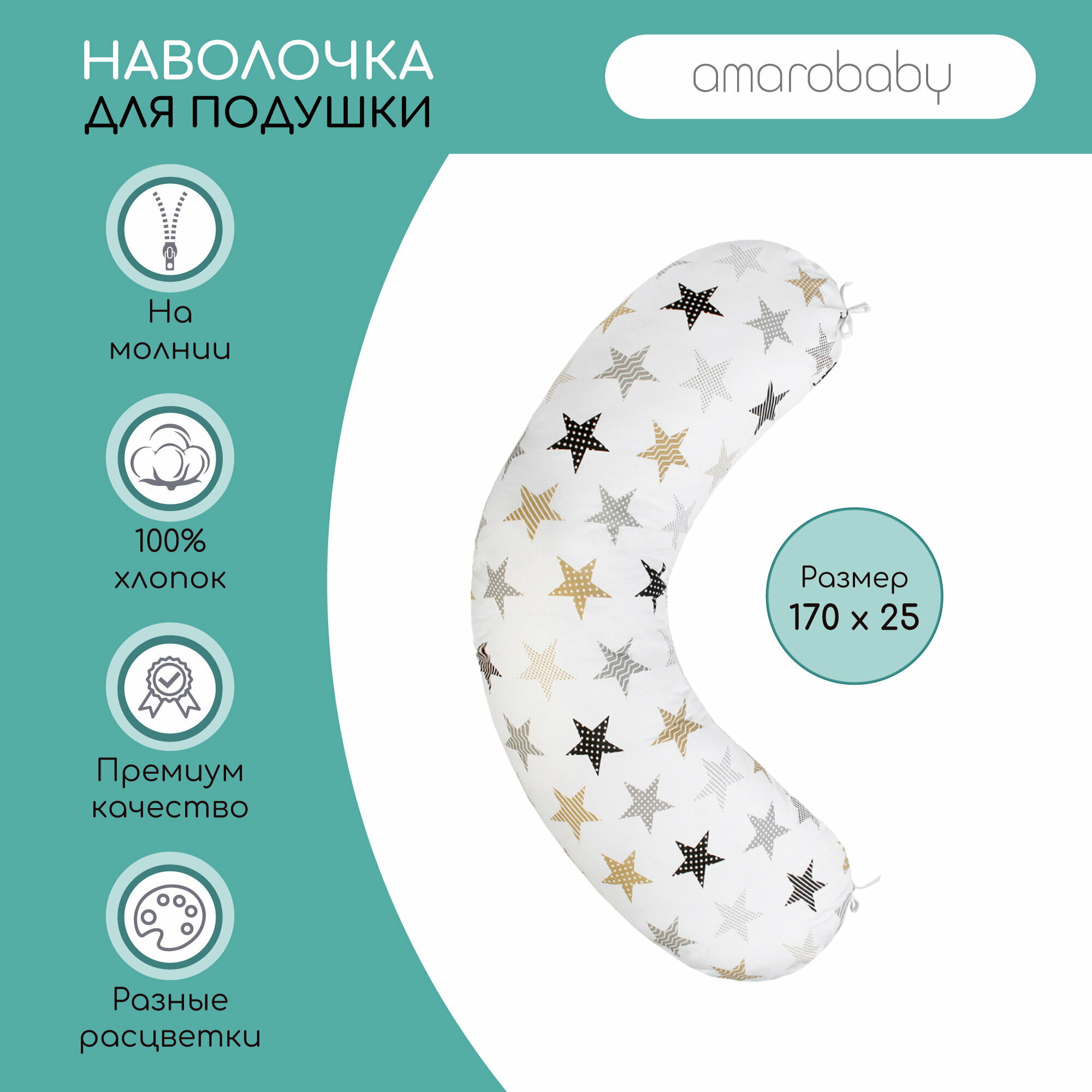 Наволочка к подушке для беременных AmaroBaby 170х25 (бязь наб.125 г) (Звезды пэчворк)