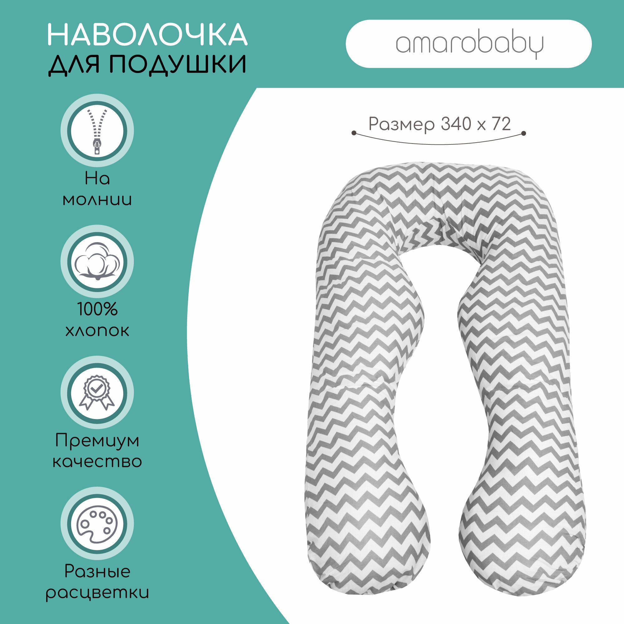 Наволочка к подушке для беременных анатомическая AmaroBaby 340х72 (Зигзаг серый) интересное:
