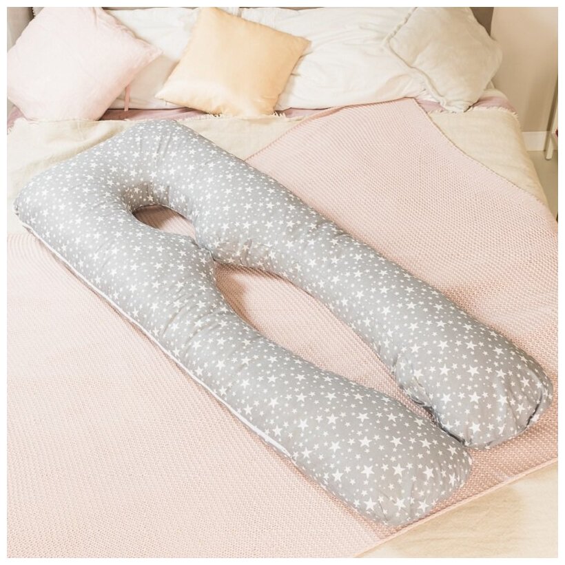 СохранитьПодушка для беременных для сна и кормления анатомическая, Евро 360 150х70см, Звездопад на сером, с лебяжим пухом + Подарок подушка для кормления интересное: