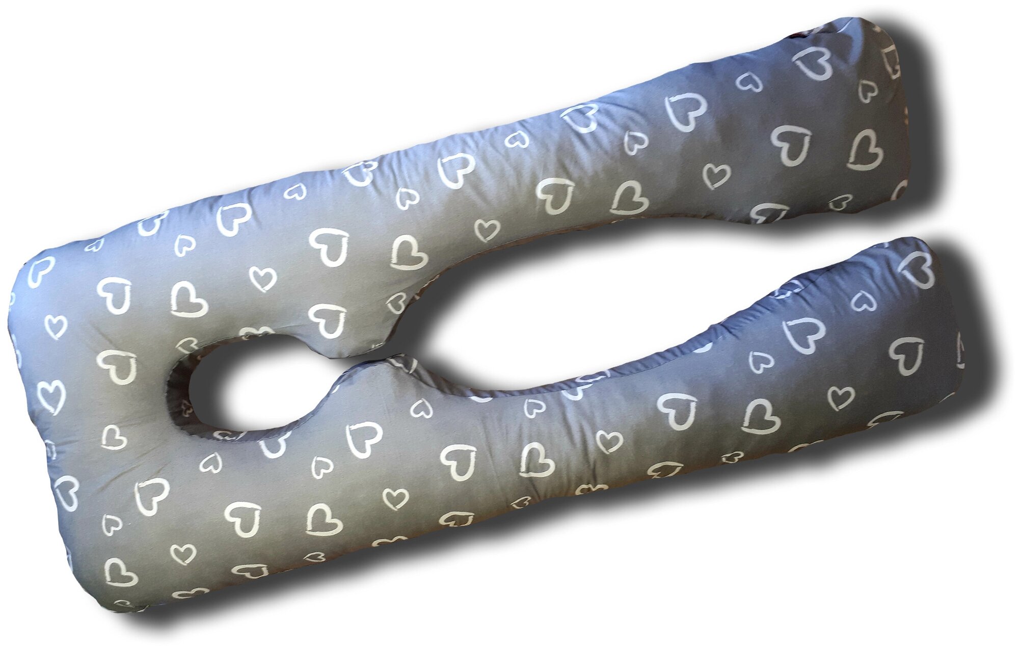 Купить Подушка для беременных для сна и кормления анатомическая, Евро 360 150х70см, Сердечки на сером, с лебяжим пухом + Подарок подушка для кормления