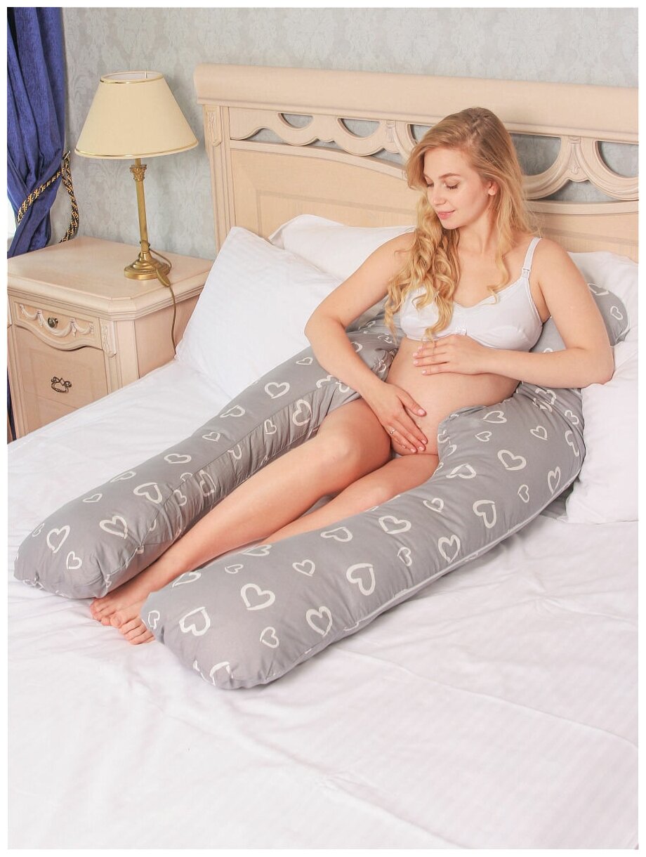 СохранитьПодушка для беременных для сна и кормления анатомическая, Евро 360 150х70см, Сердечки на сером, с лебяжим пухом + Подарок подушка для кормления интересное: