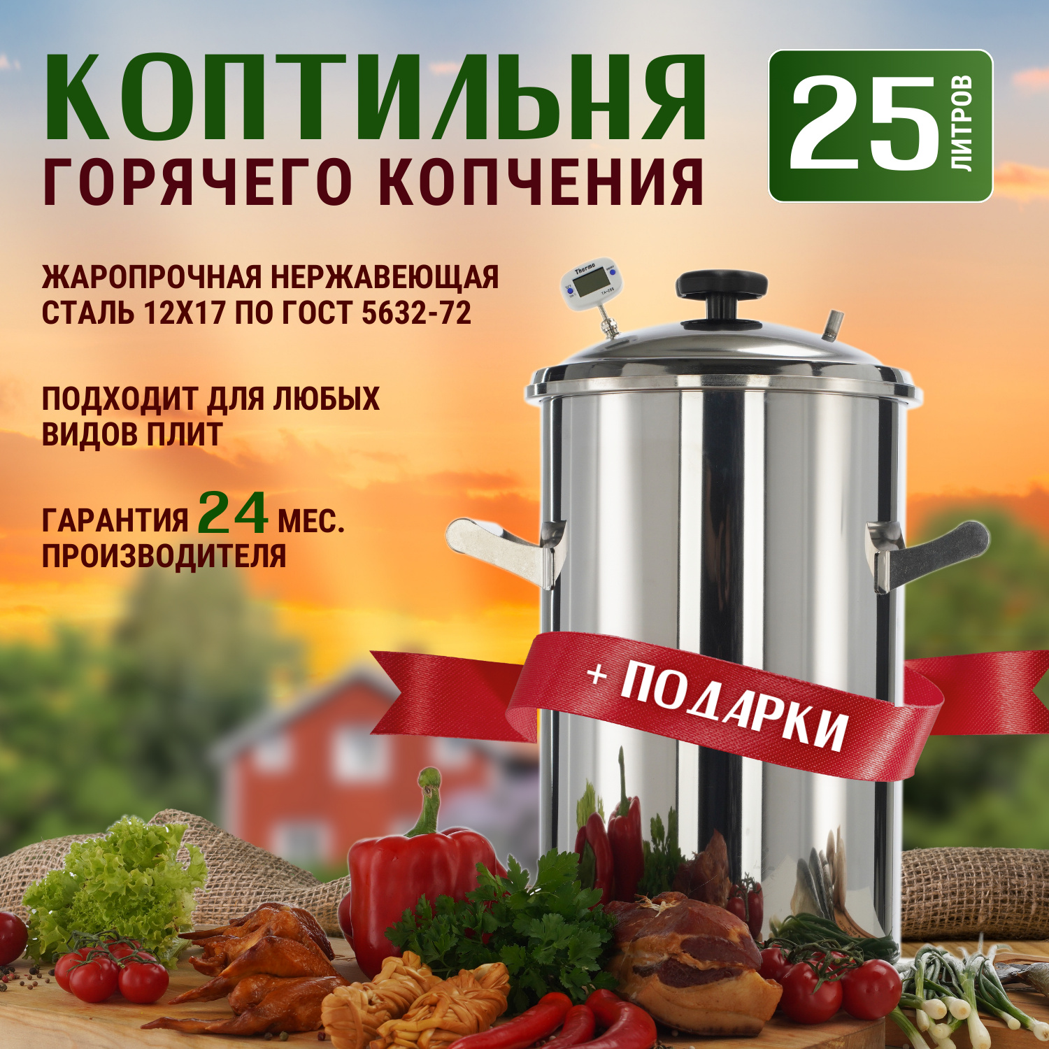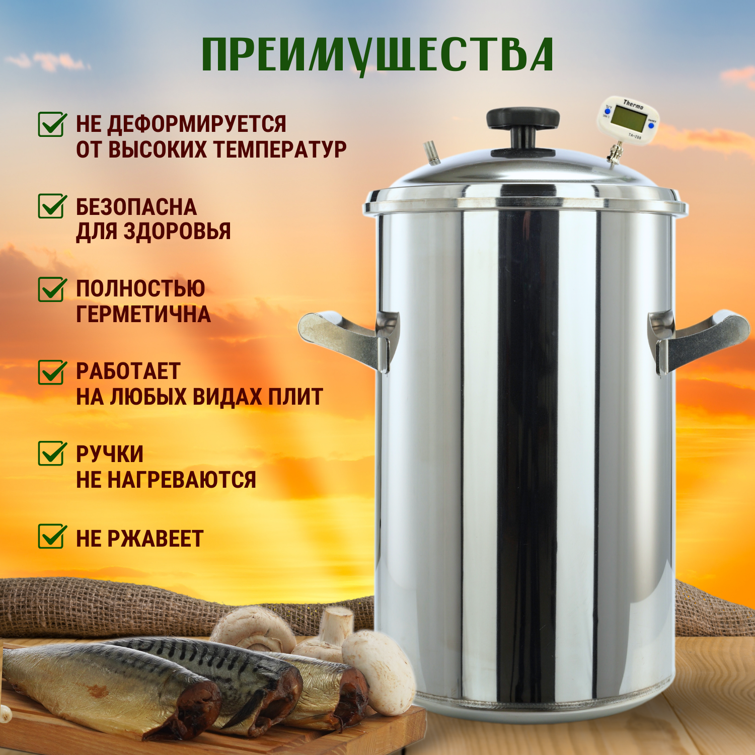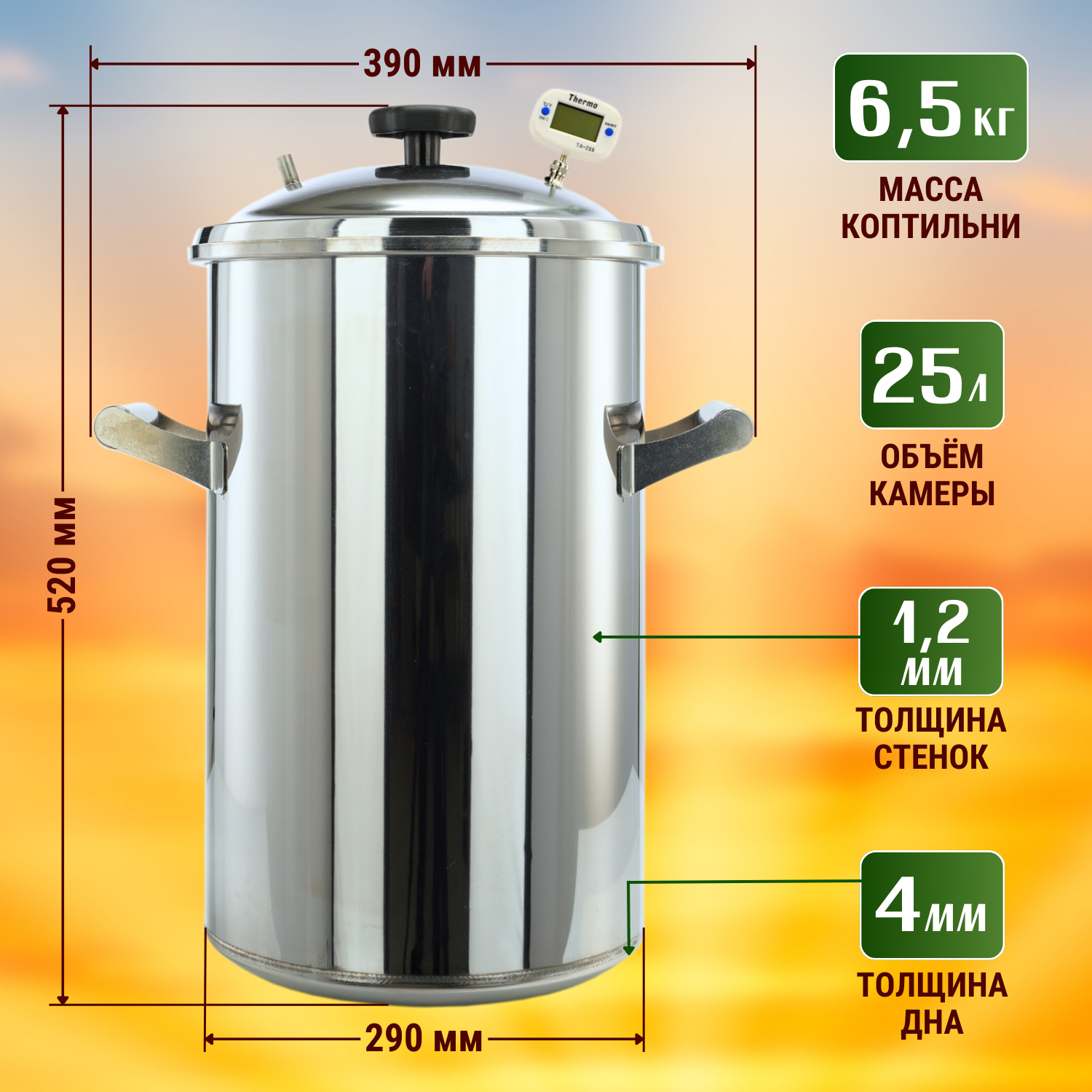 Купить Домашняя коптильня горячего копчения из нержавеющей стали Вкус Качества 25 л