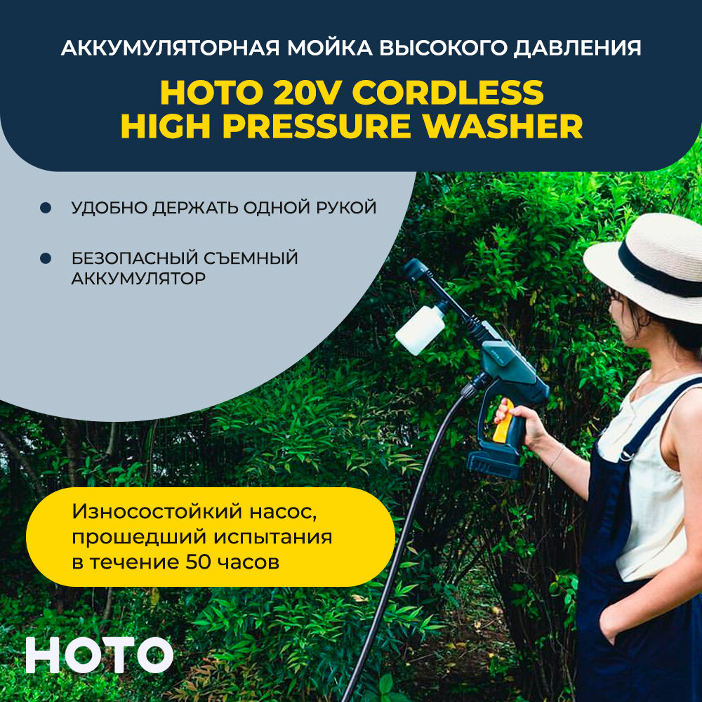 Мойка высокого давления аккумуляторная HOTO 20V Cordless High Pressure Washer интересное: