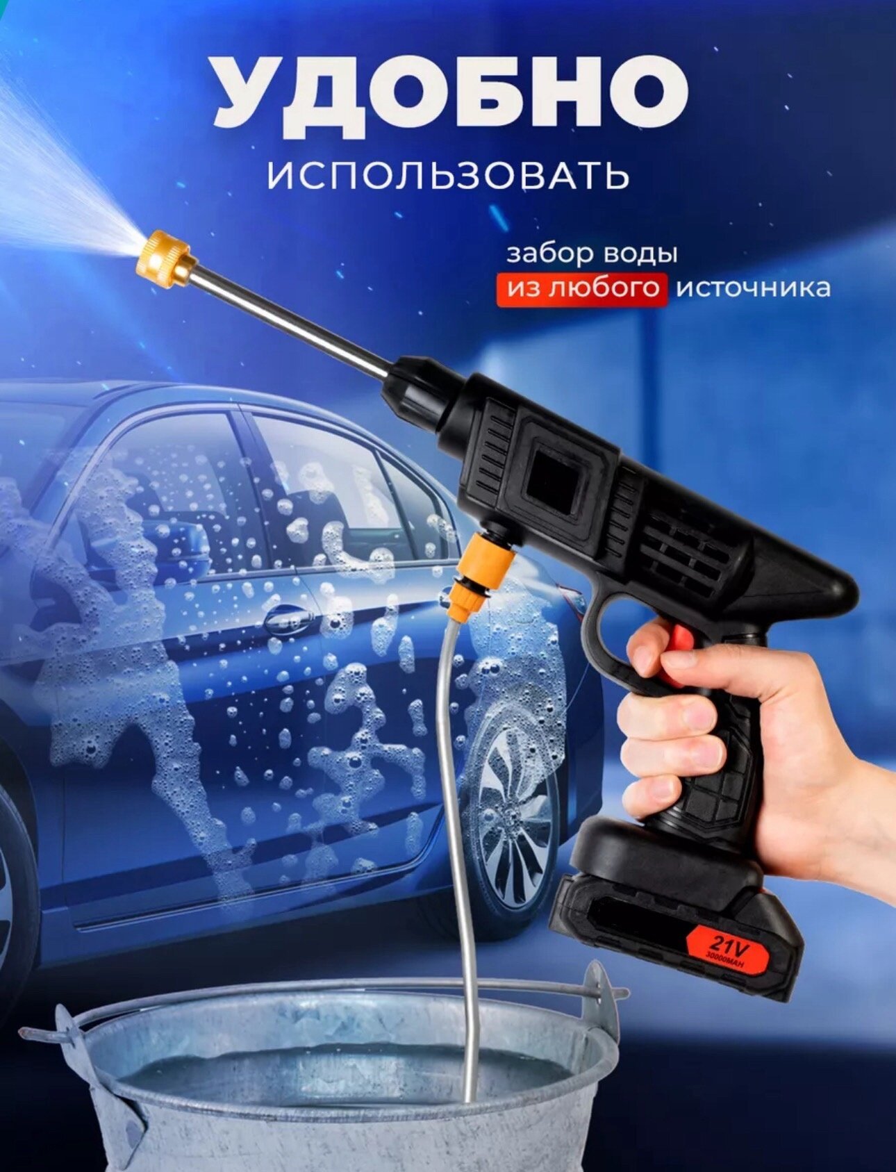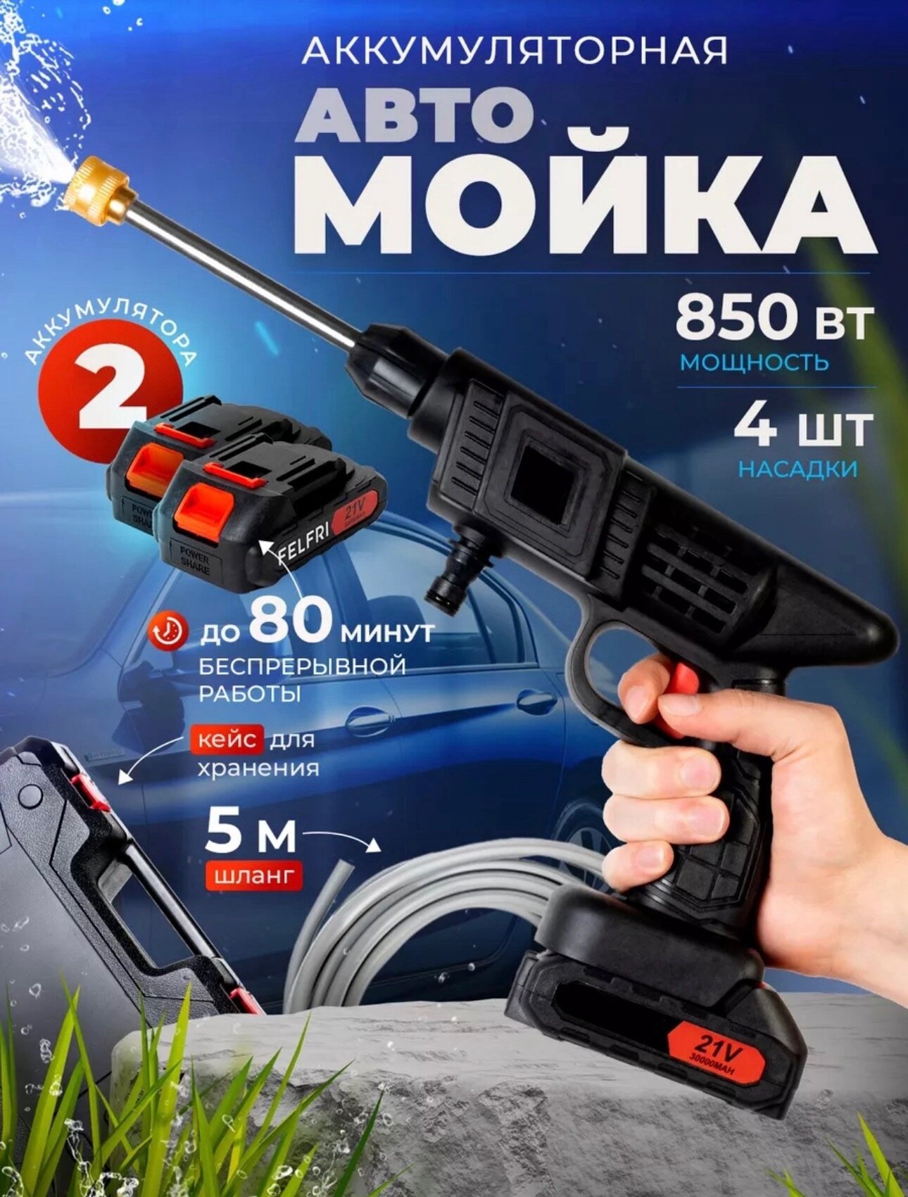 Автомойка аккумуляторная высокого давления беспроводная портативная, 2 аккумулятора интересное: