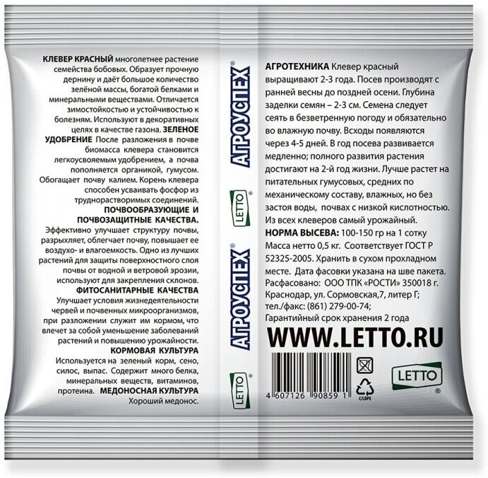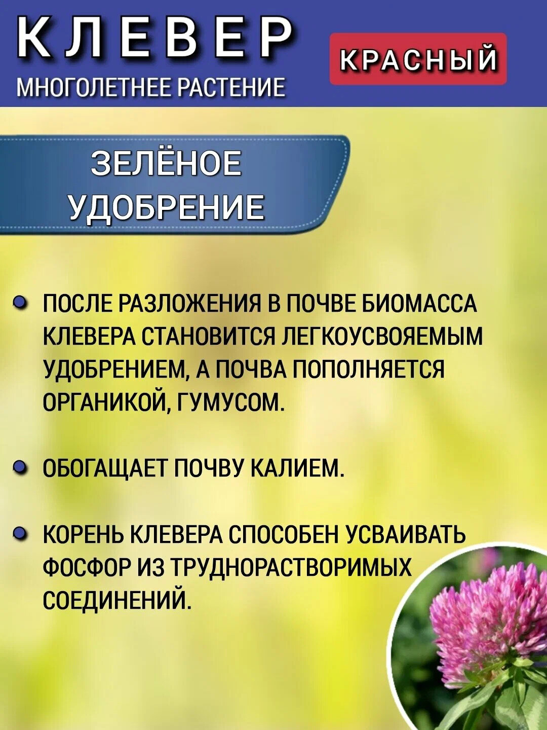 Сидераты семена агроуспех Клевер красный 0,5 кг интересное: