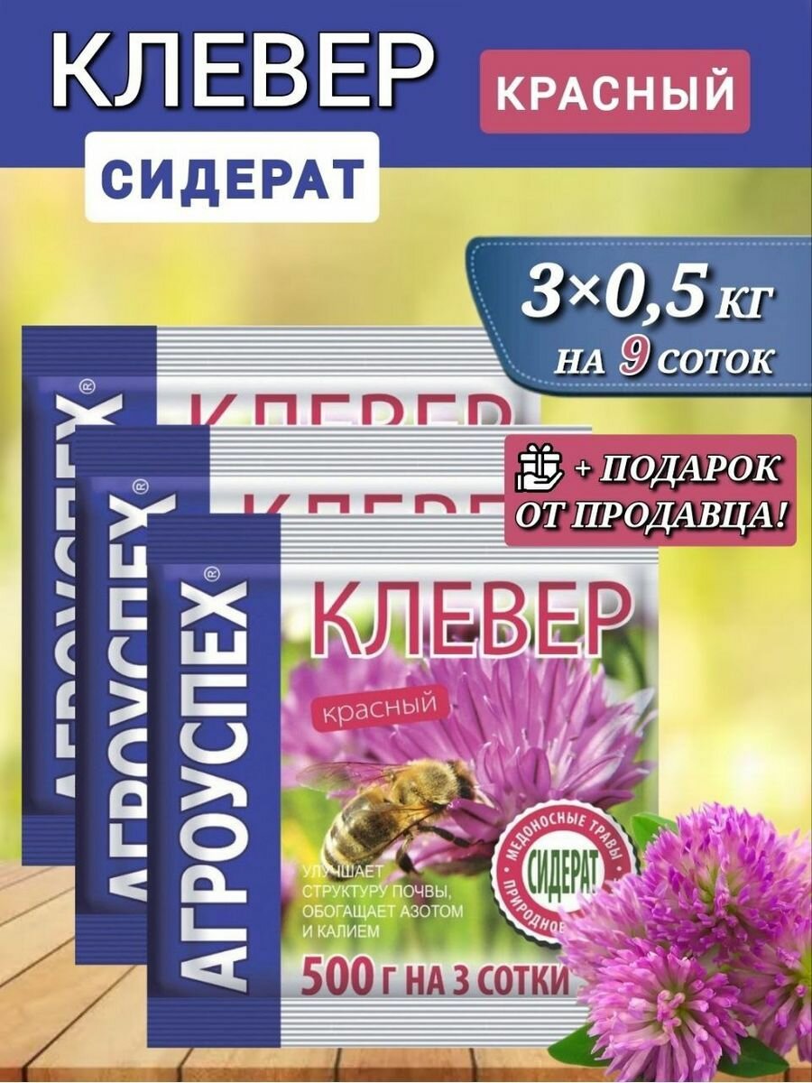 Семена сидерат "агроуспех" Клевер красный 3шт, натуральное, органическое удобрение интересное: