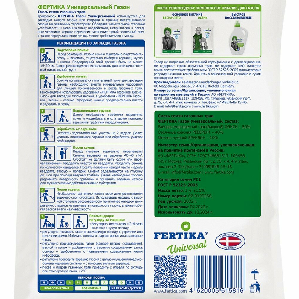 Семена газонной травы FERTIKA Универсальные 1 кг интересное: