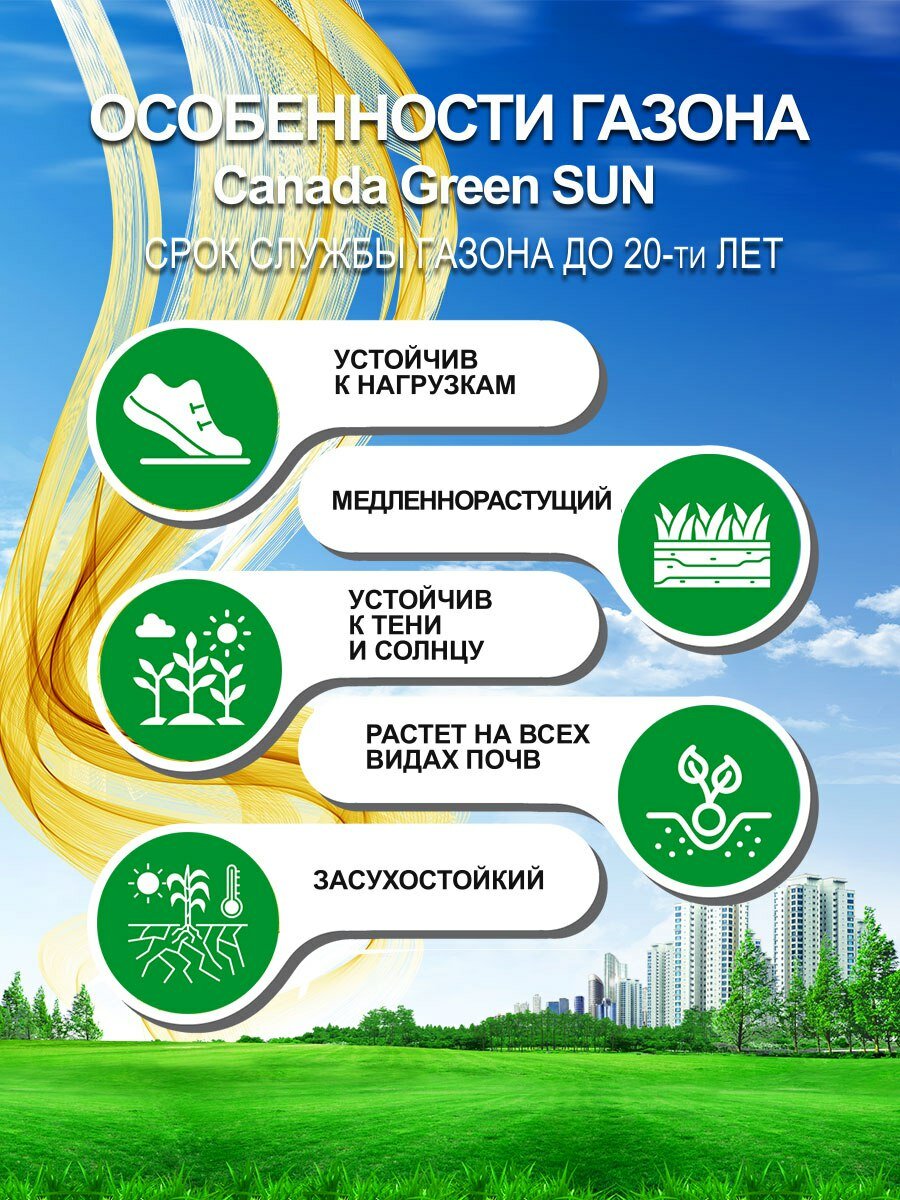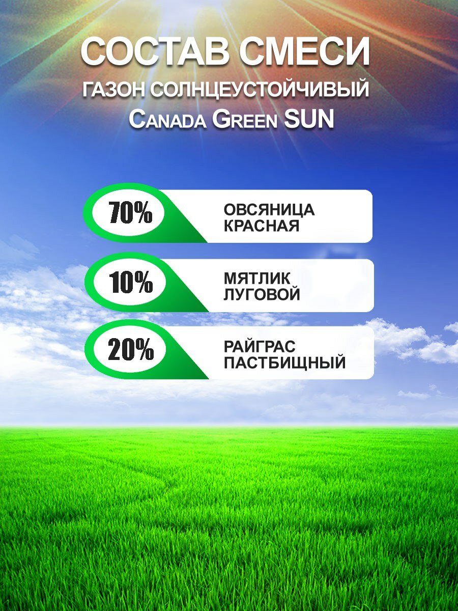 Газонная трава семена Канада Грин Солнечный SUN 5 кг/ райграс, мятлик, овсяница семена интересное: