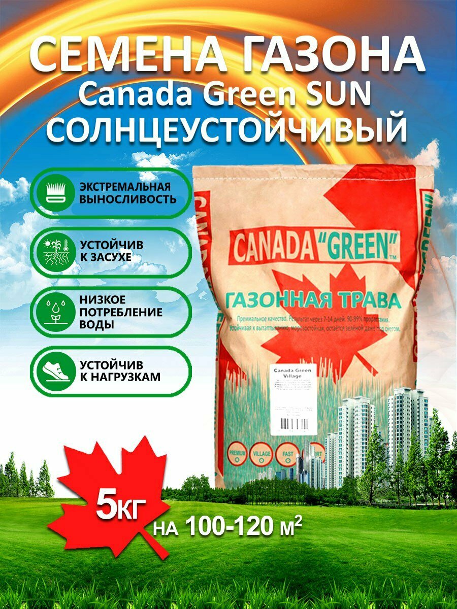 Купить Газонная трава семена Канада Грин Солнечный SUN 5 кг/ райграс, мятлик, овсяница семена