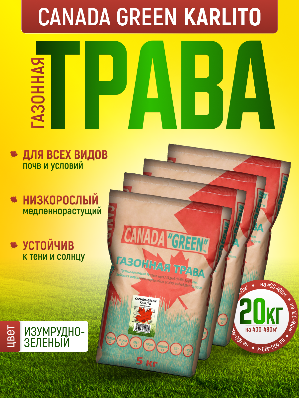 Газонная трава Канада Грин Низкорослая Карлито 20 кг / Canada Green Karlito / семена газона мятлик, овсяница интересное: