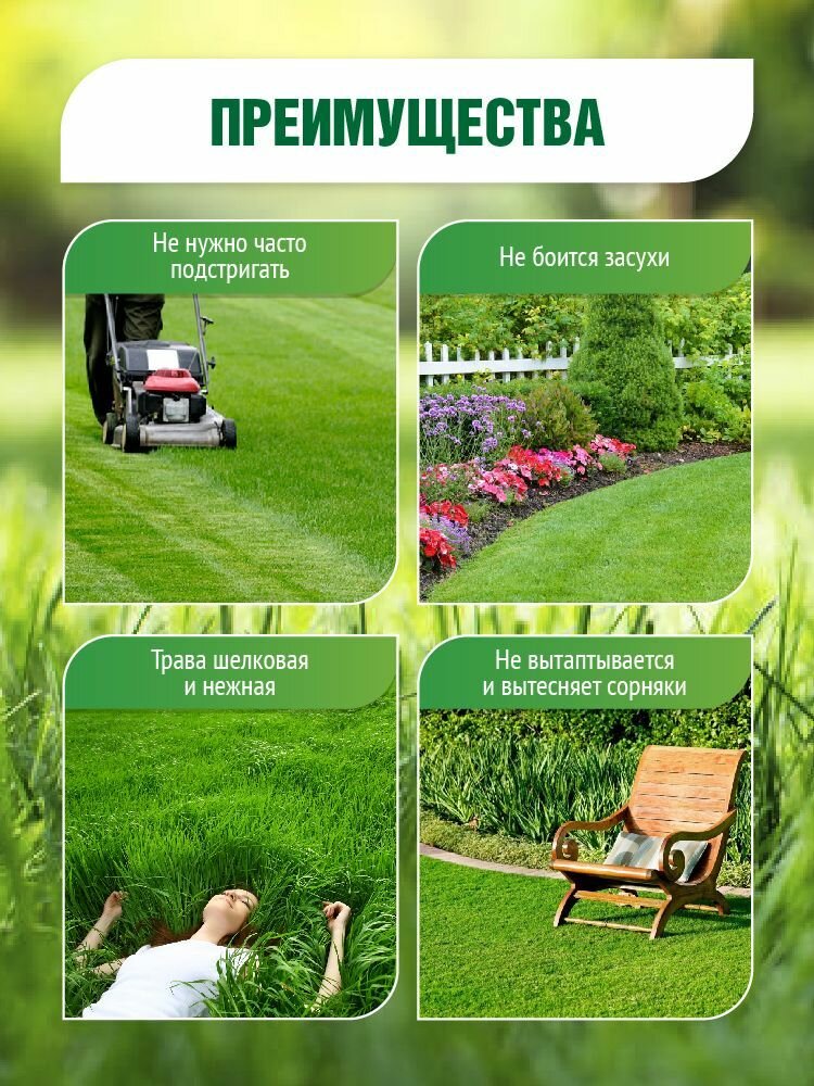 Газонная трава семена Дачная 3кг, Зеленый Метр