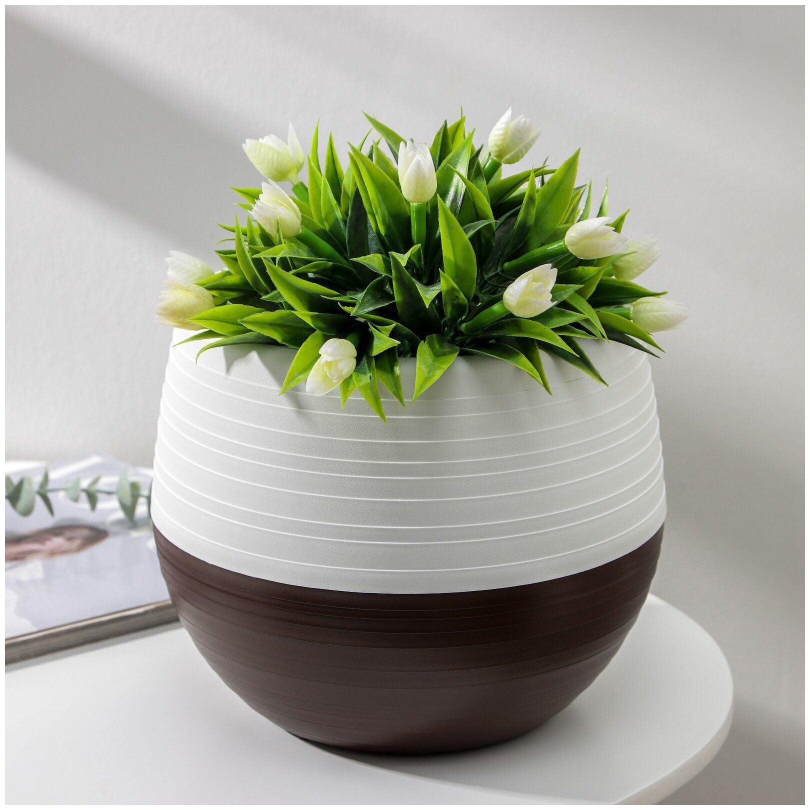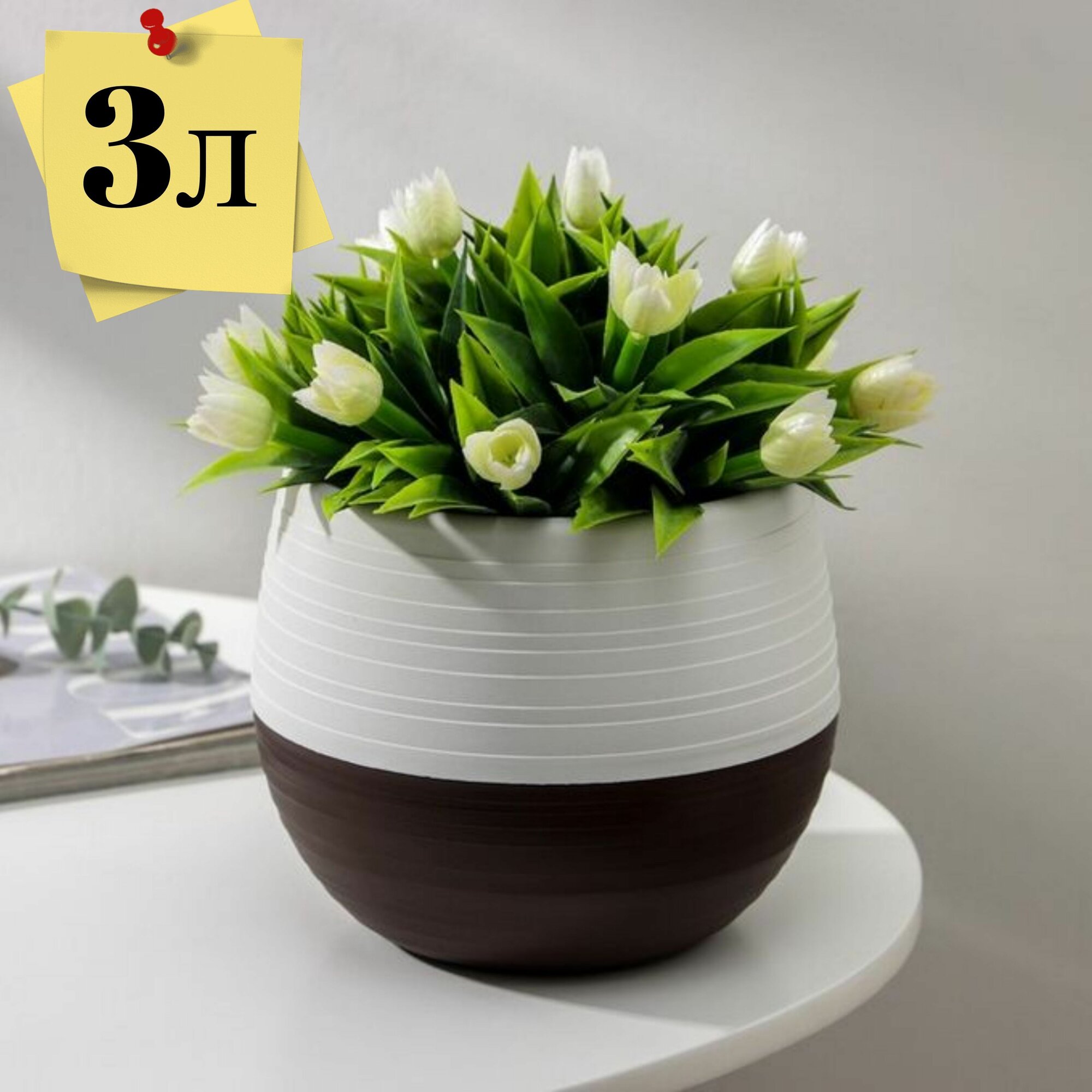 Горшок для цветов «Япония», 3 л, белый-тёмно-коричневый