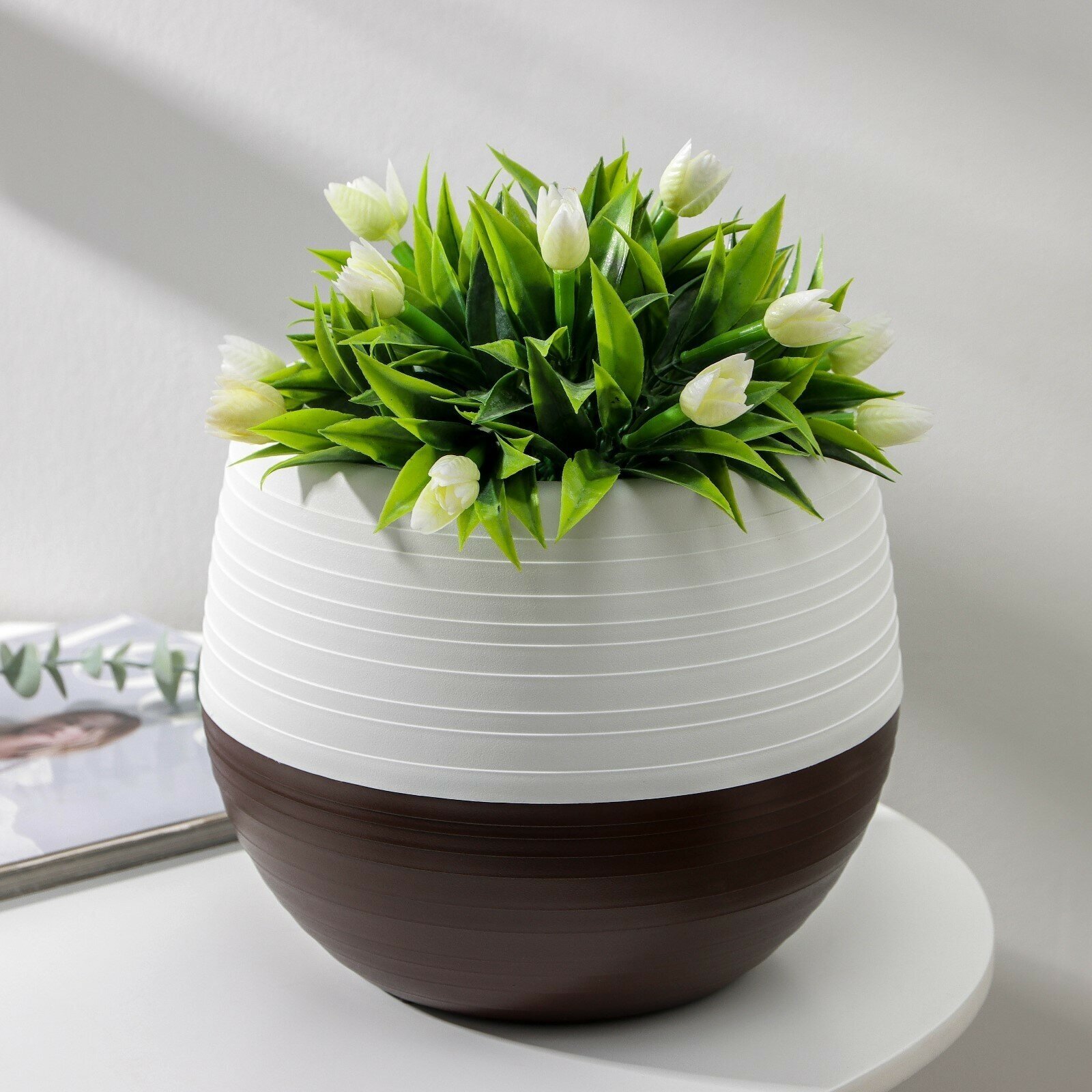 Купить Горшок для цветов «Япония», 3 л, цвет белый-тёмно-коричневый