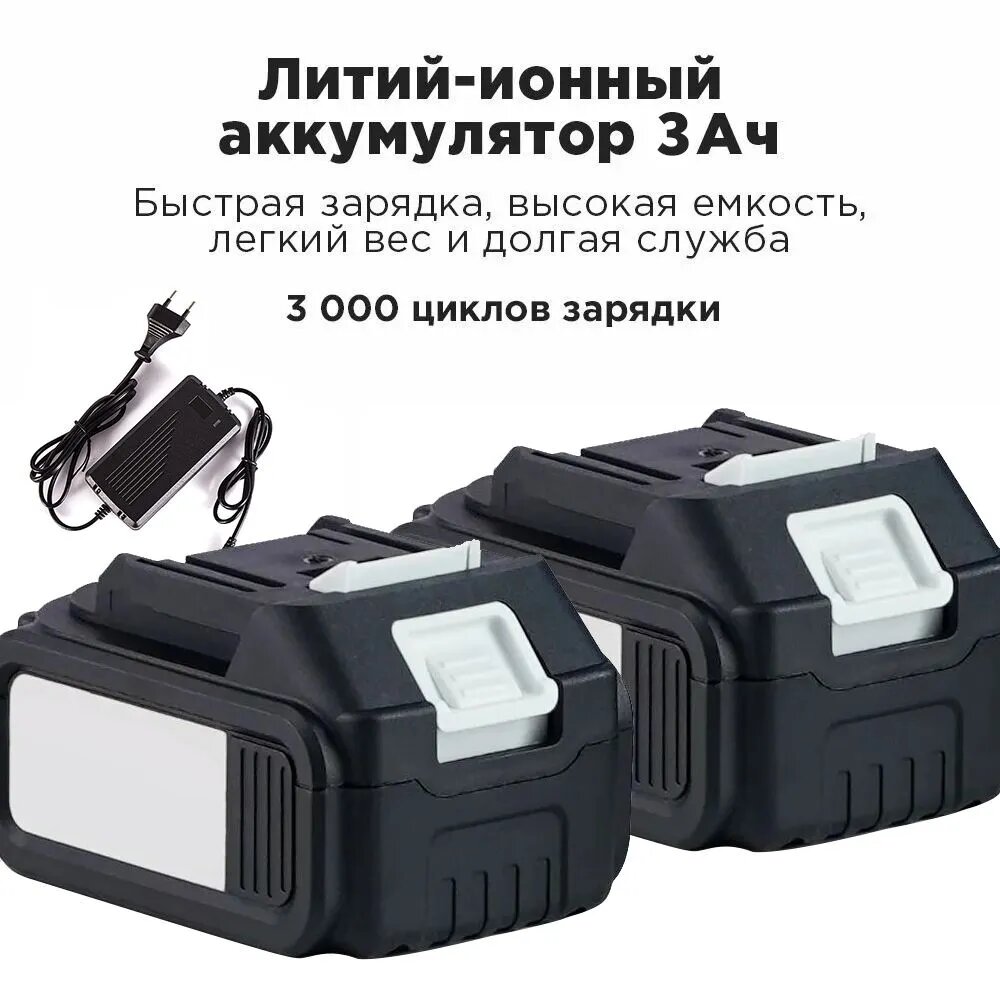 Воздуходувка аккумуляторная для дома и сада, 2 АКБ 3Ah и ЗУ, Черный