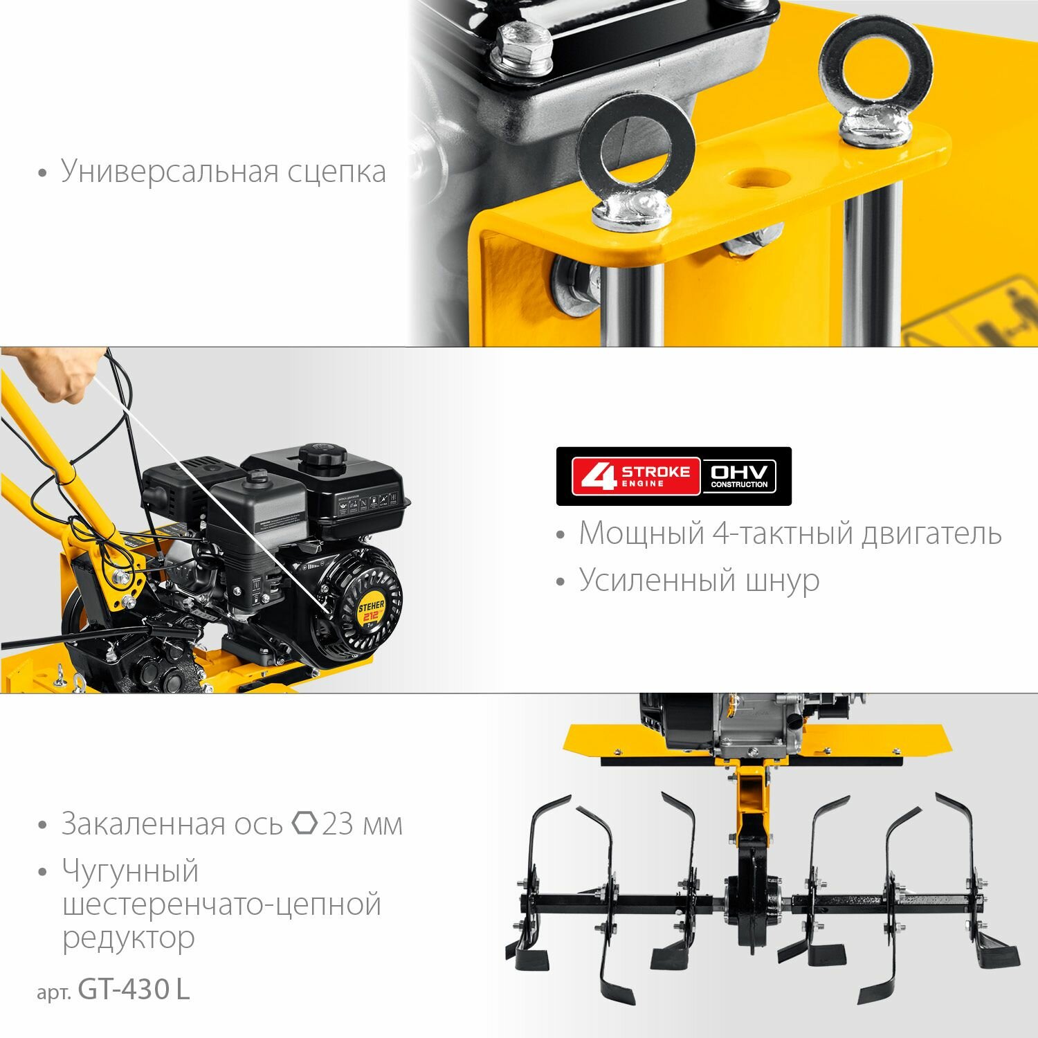STEHER без колес, 7 л.с., мотоблок с понижающей передчей (GT-430 L) интересное: