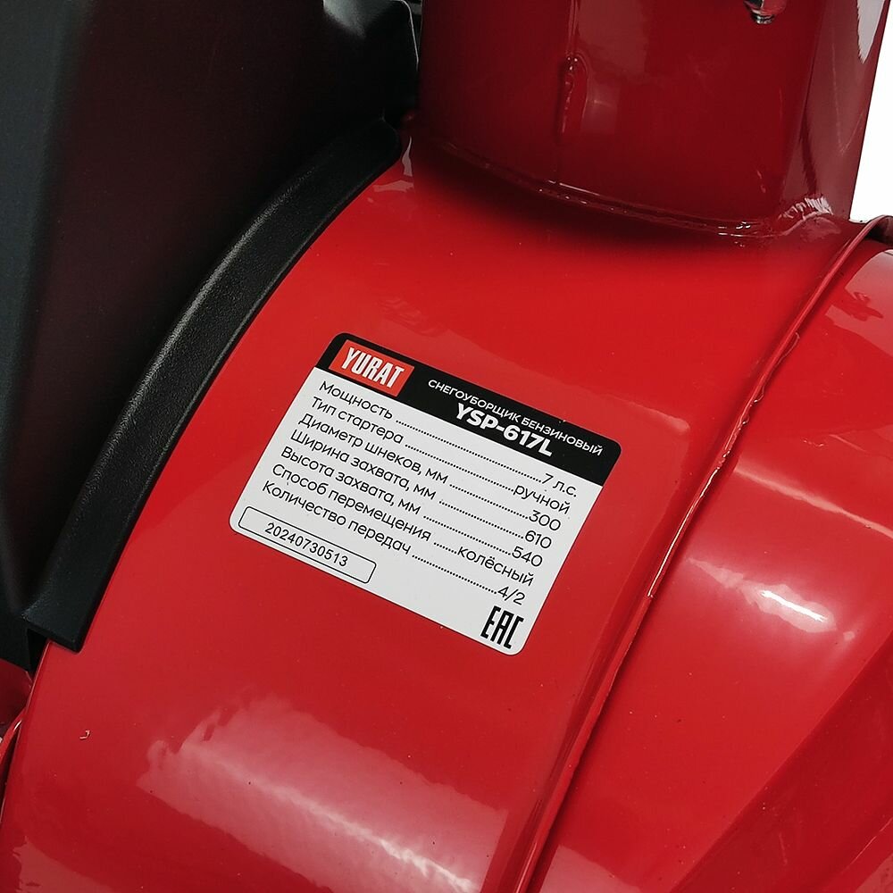 Снегоуборщик бензиновый самоходный YURAT YSP-617L, 7 л.с, ширина 61см, высота 54см, скорости 4 вперед / 2 назад интересное: