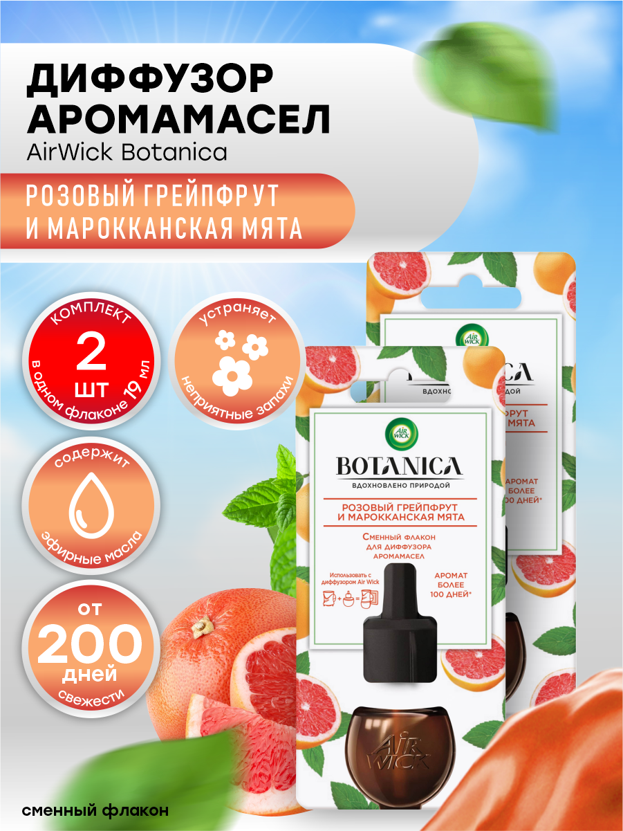 Купить Сменный флакон для диффузора AirWick Botanica Розовый грейпфрут марокканская мята х 2 шт.