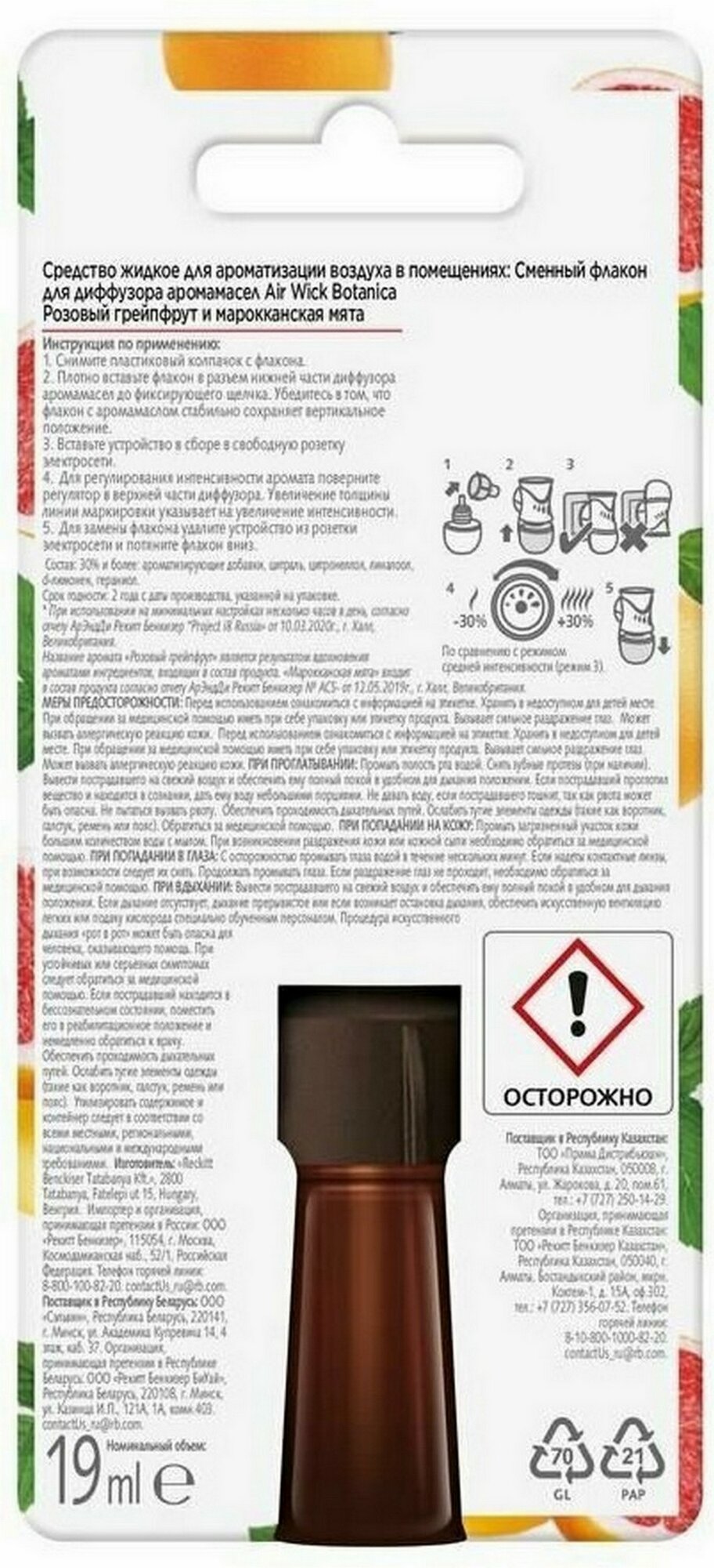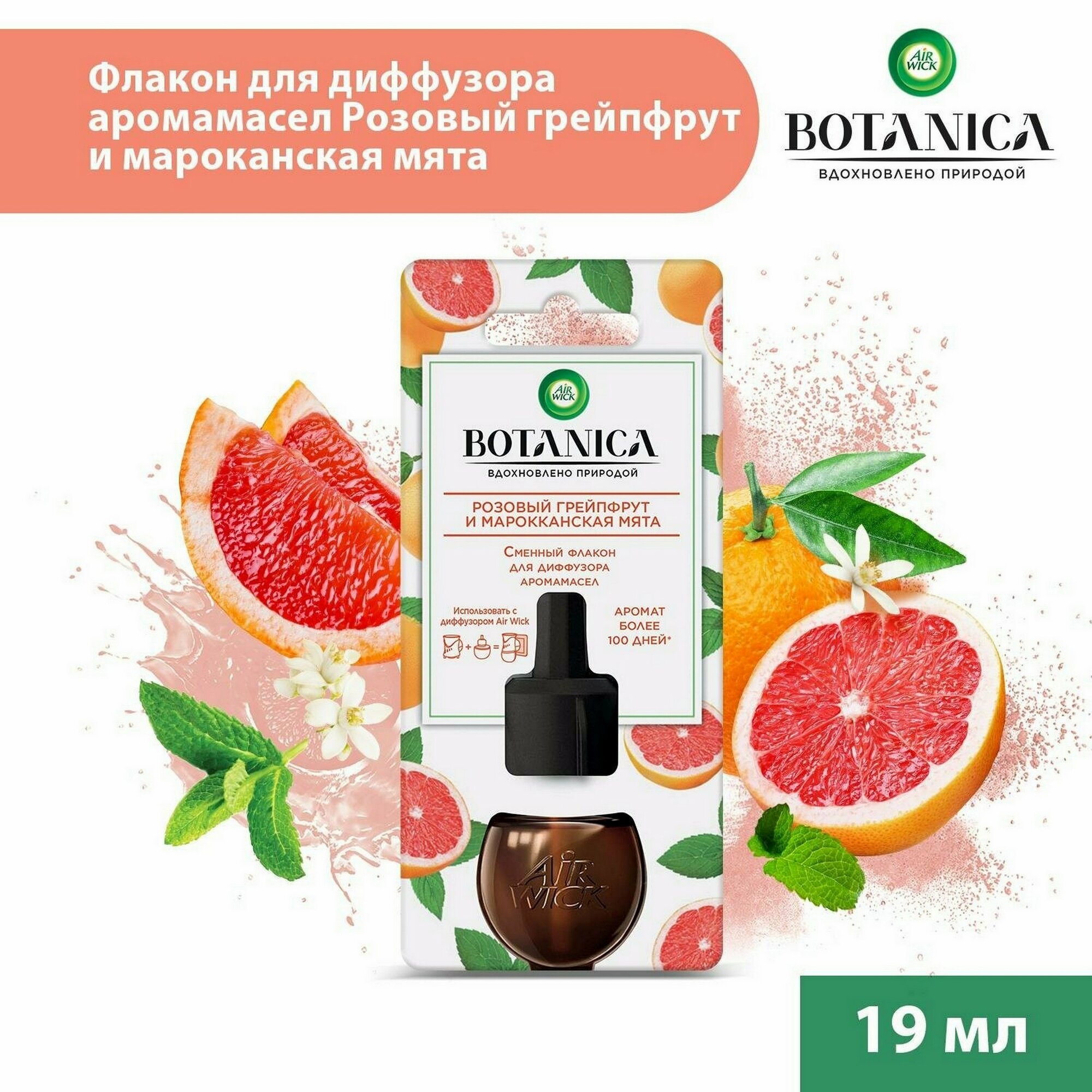 Сменный флакон для диффузора аромамасел AirWick Botanica Розовый грейпфрут и марокканская мята 19мл.