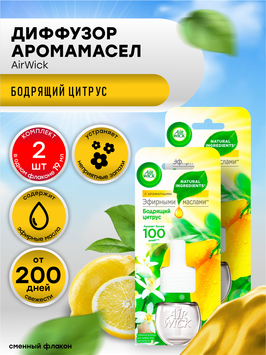 Купить Сменный флакон для диффузора аромамасел AirWick Бодрящий цитрус 19 мл. х 2 шт.