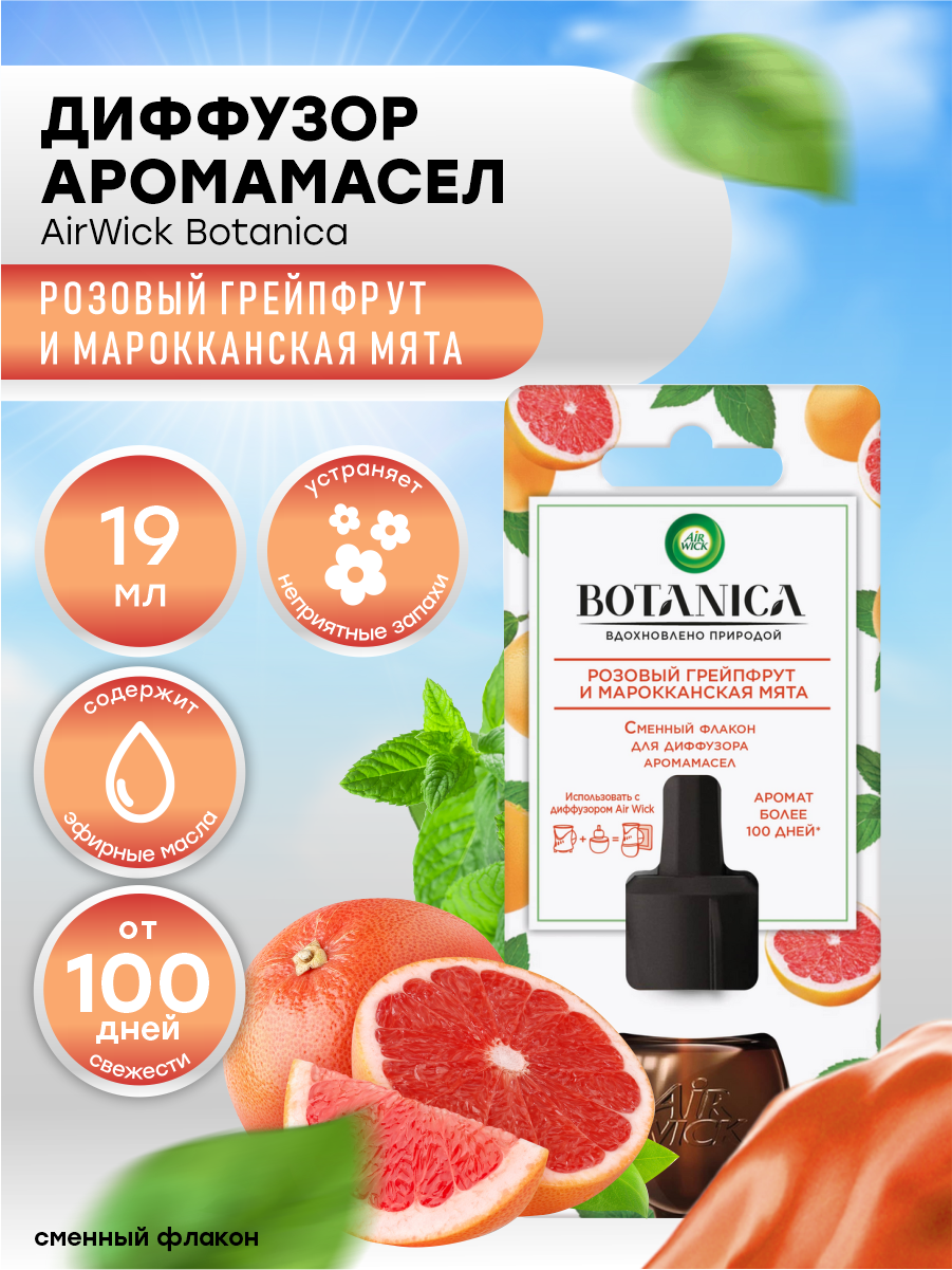 СохранитьСменный флакон для диффузора аромамасел AirWick Botanica Розовый грейпфрут и марокканская мята 19мл. интересное: