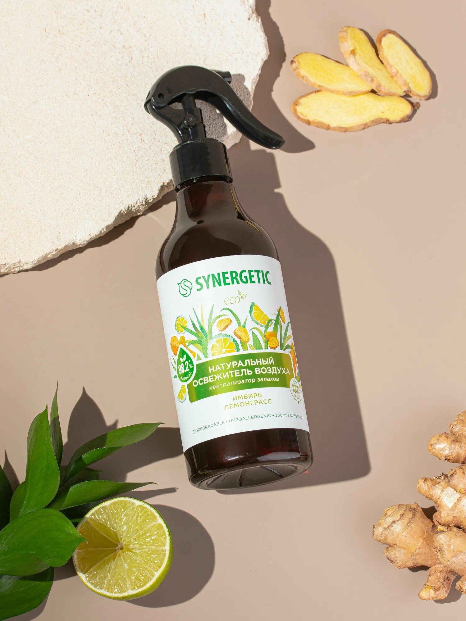 Купить Ароматический гипоаллергенный освежитель воздуха SYNERGETIC "Имбирь и лемонграсс" на водной основе, натуральный нейтрализатор запаха, 380 мл