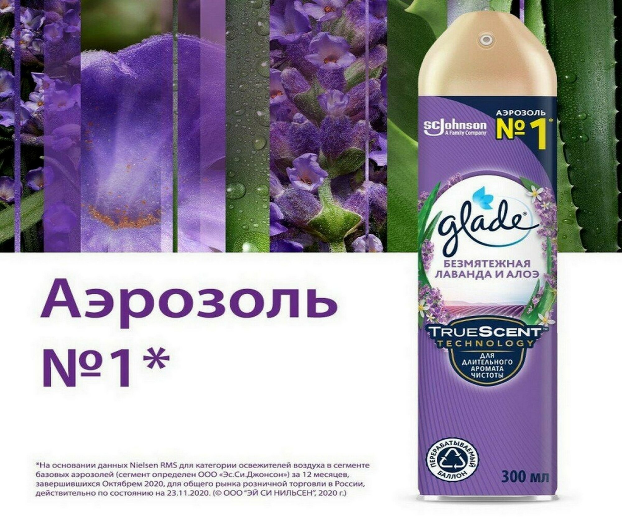 Glade Аэрозоль Безмятежная лаванда и алоэ 300 мл, ,