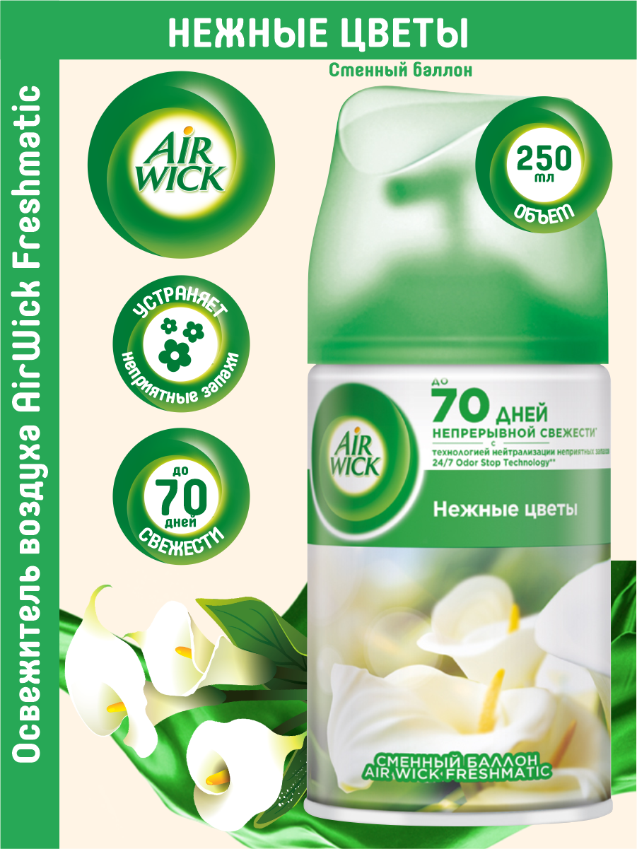 Сменный баллон к автоматическому аэрозольному освежителю воздуха Air Wick Freshmatic Нежные цветы освежитель воздуха 250 мл 1 шт.
