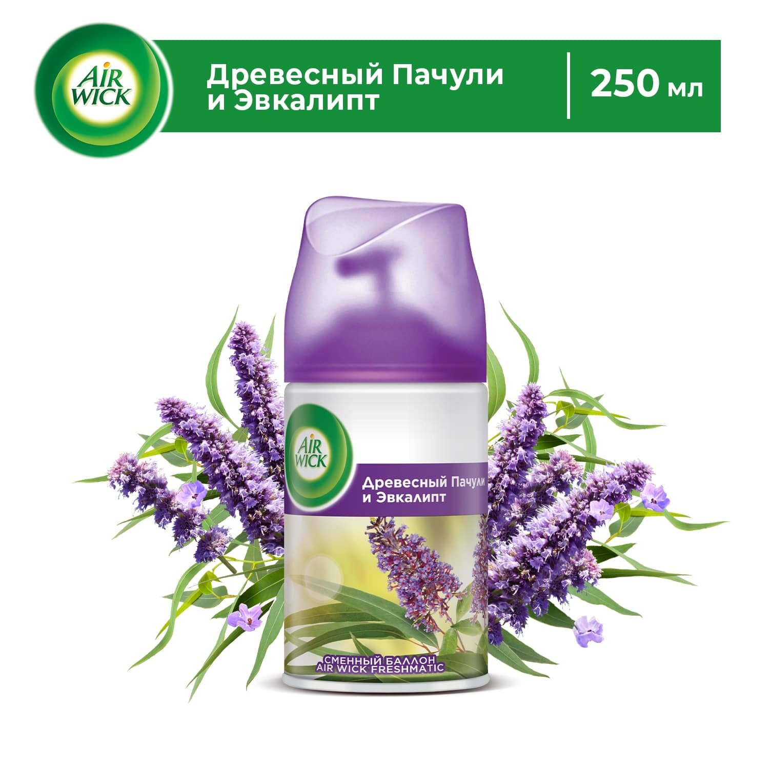 Купить Сменный баллон освежителя воздуха к автоматическому распылителю Air Wick Freshmatic Древесный Пачули и Эвкалипт, 250 мл