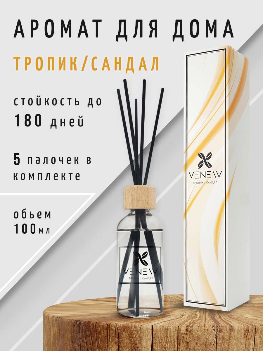 СохранитьДиффузор для дома, ароматизатор с палочками VENEW "Тропик / сандал" 100 мл интересное: