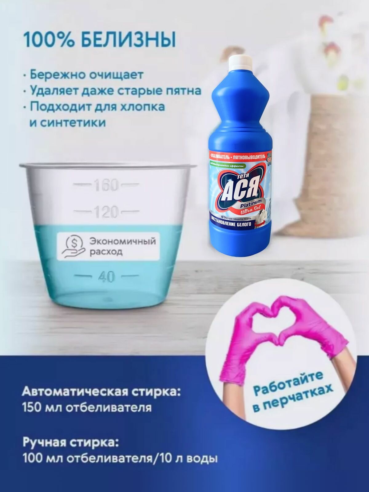 Купить Отбеливатель тетя Ася Platinum Ultra, гель 1 л для белого белья, пятновыводитель 1 шт