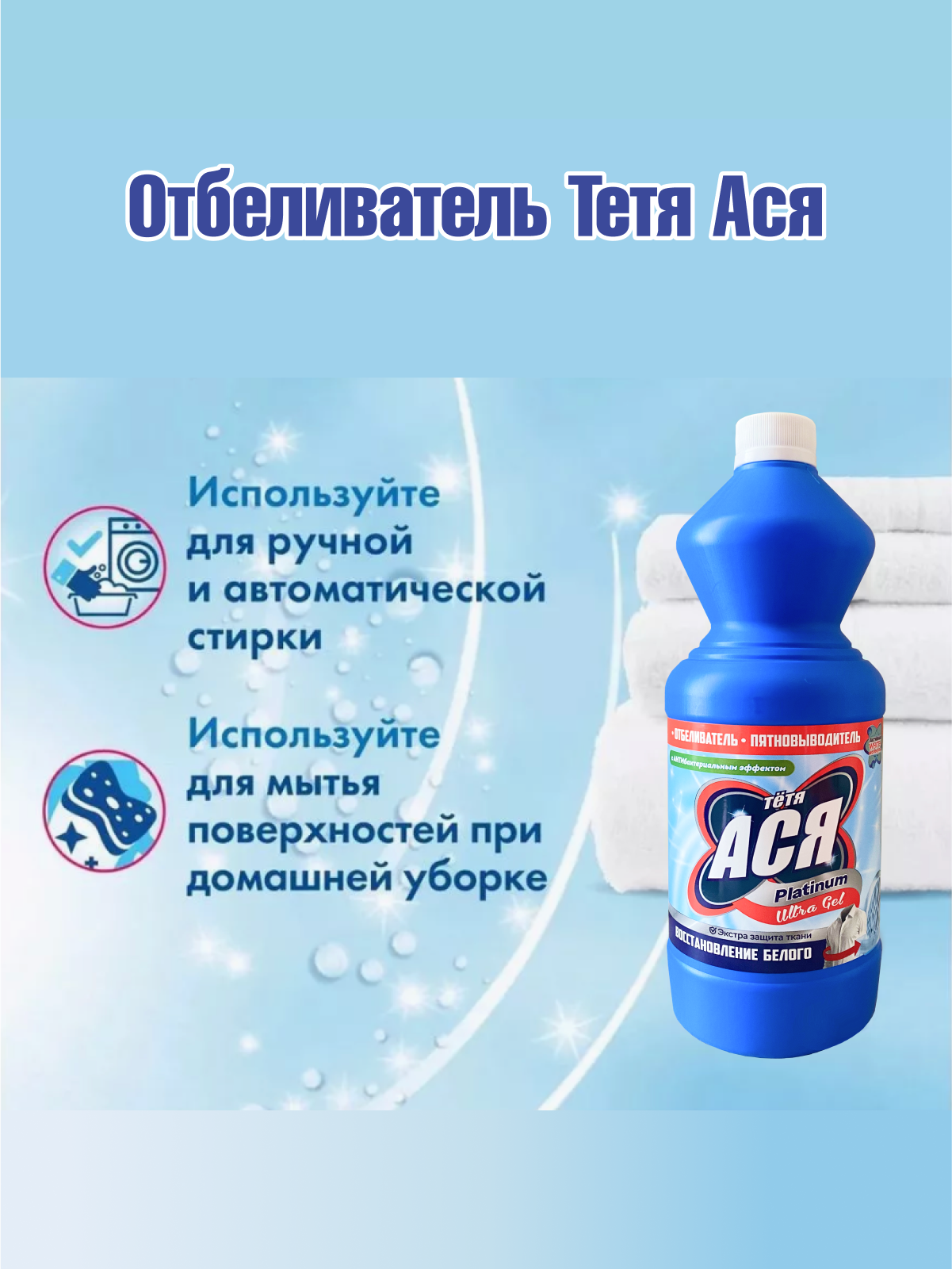 Купить Отбеливатель тетя Ася Platinum Ultra, гель 1 л для белого белья, пятновыводитель 2 шт