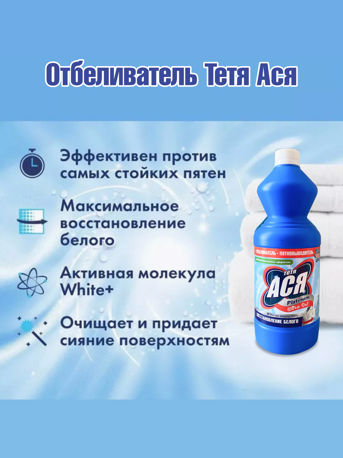 Отбеливатель тетя Ася Platinum Ultra, гель 1 л для белого белья, пятновыводитель 6 шт.